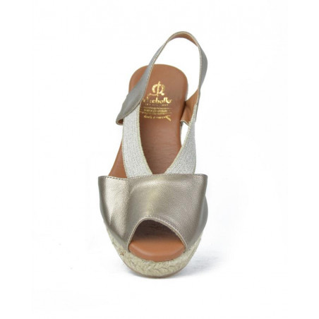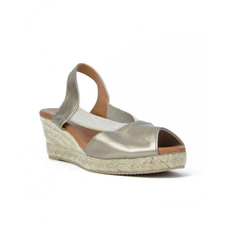 Alpargata yute Marca El Caballo Modelo YUTE CAÑA ELASTICO en color plata. Suela de yute 5 cuerdas