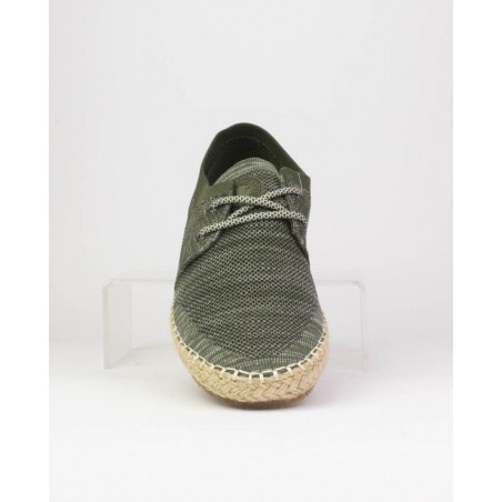 Alpargata hombre en tejido kaki estilo calcetin. Sin forro. Cierre cordones. Pantilla extraible ligera eva termoconformada. Suela goma