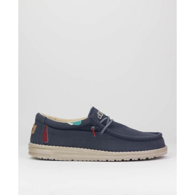 Zapatilla DUDE wallaby caballero en color jeans lavado. Con cierre cordones elasticos para ajustar al pie. Fabricado en tejido. Suela ligera de phylon.