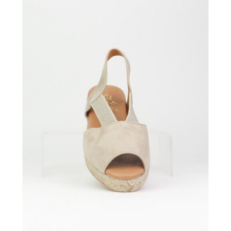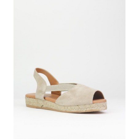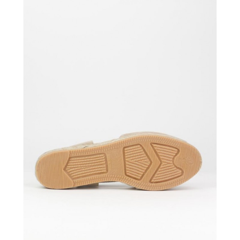 Alpargata yute El Caballo. Fabricado en ante cuero. Unido con dos elasticos cruzados. Planta en piel con logo dorado. Altura de 2.5 cm. Fabricado en España.