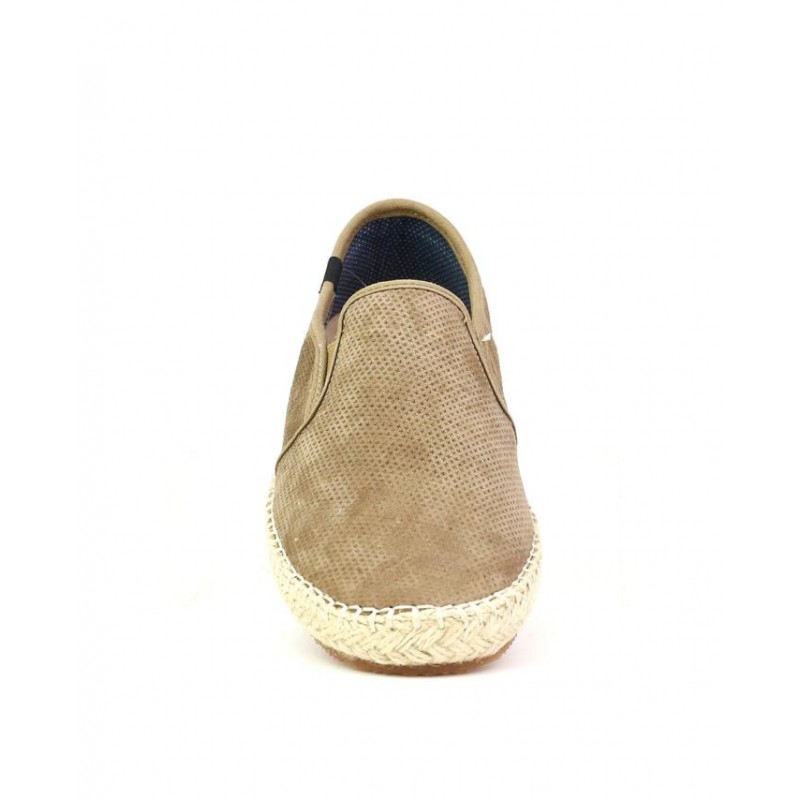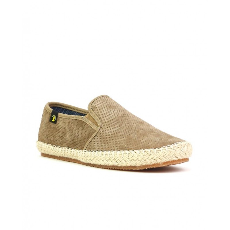 Alpargata caballero serraje marrón claro, elásticos laterales, forro textil, plantilla extraible de eva termoconformada, suela de goma.Composición: Empeine: Piel. Forro y plantilla: Tejido. Suela: Fibra sintetica. Componente principal: Piel