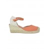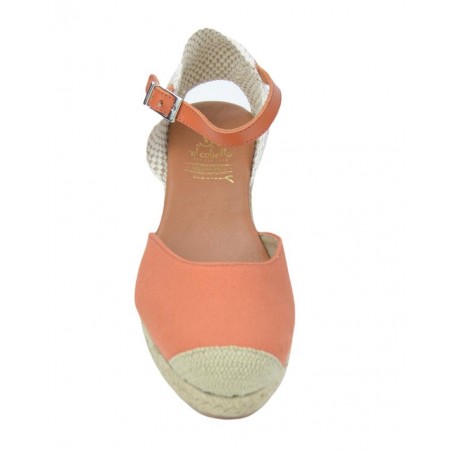 Alpargata yute en tejido pique color teja. Talón mecánico con cinta de piel y cierre hebilla. Yute 5 cuerdas, con 5,5 cm de altura y 2 cm de plataforma