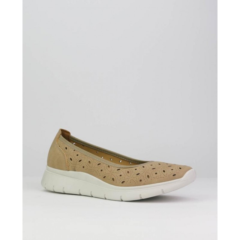 Bailarina perforada Imac Beige. Bailarina en otros materiales con plantilla piel. Suela ligera blanca de 3 cm aprox. Fabricado en Italia.