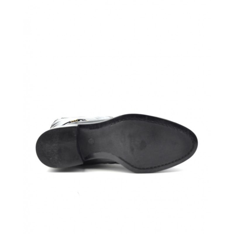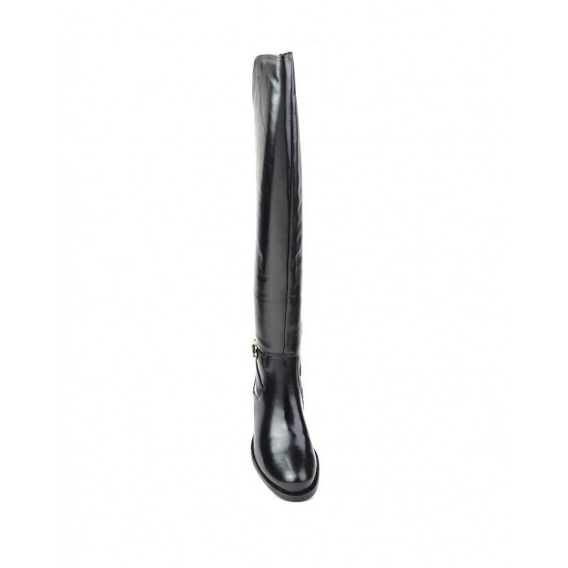 Bota alta mosquetera señora marca Caramelo en color negro fabricada con pieles de vacuno de calidad superior, cremallera interior y elástico trasero para facilitar la puesta y retirada del producto, forro de textil con vista de piel, suela con tacón de 3,5 cm altura con adorno de pieza metálica trasera en vira, hebilla lateral decorativa, caña de aproximadamente 52 cm altura. Composición: Empeine: Piel. Forro: Textil. Plantilla: Piel. Suela: Fibra sintética. Componente principal: Piel.