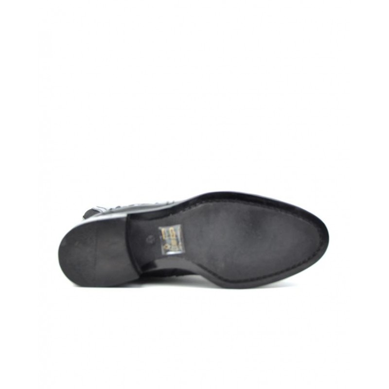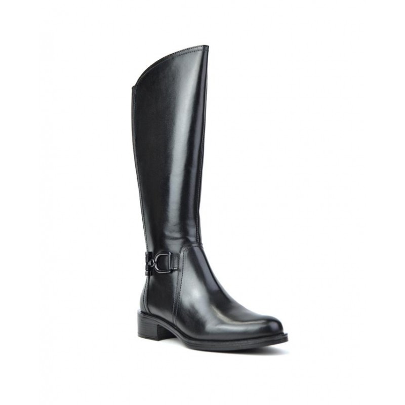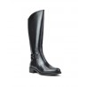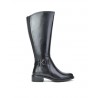 Bota marca Caramelo fabricada con pieles vacunos de calidad superior en color negro, forro en piel combinado con textil para aumentar la sensación de confort y calidez, altura de tacón 4 cm, suela de goma para mejorar el confort y vira con detalles de apliques metálicos decorativos, cierre cremallera interior para facilitar la puesta y retirada del pie, altura de caña 39 cm. Composición: Empeine: Piel. Forro: Textil. Plantilla: Piel. Plantilla: Piel. Suela: Fibra sintética. Componente principal: Piel
