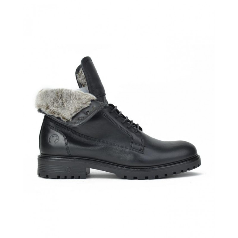 Botas caballero Coronel Tapiocca fabricadas en piel negro, cierre de cordones, forro de pelo textil, plantilla textil extraible, caña de 16 cm altura, suela de 3,5 cm de tacón y 1,5 cm de plataforma, fabricadas en España. Composición: Empeine: Piel. Forro y plantilla: Textil. Suela: Fibra sintetica. Componente principal: Piel