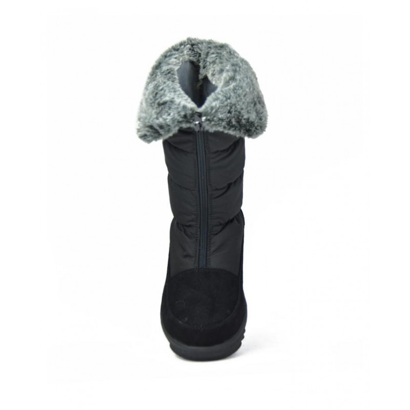 Botas de señora Coronel Tapiocca fabricados en serraje y textil negro resistente al agua, forro de pelo textil, plantilla textil extraible termoconformada, caña de 26 cm altura, suela con tacón de 4 cm y plataforma de 2 cm, cierre de cremallera. Composición: Empeine: Piel. Forro y plantilla: Textil. Suela: Fibra sintetica.
