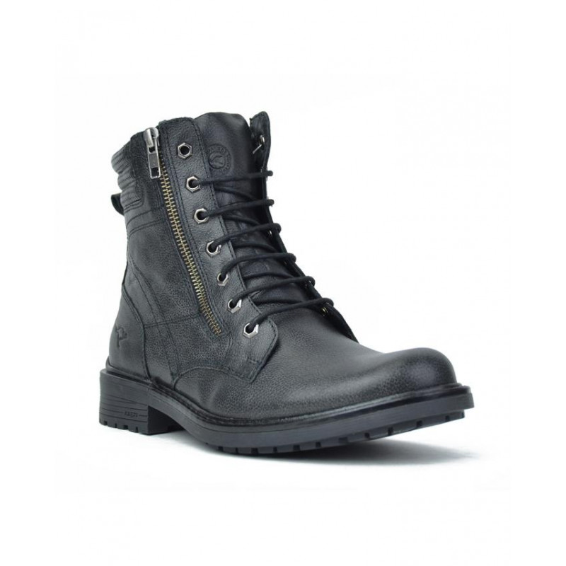Botas hombre Kangaroos fabricados en piel negro, cierre con cordones y cremallera en los dos laterales para facilitar la puesta y retirada del producto, forro combinado piel vacuno y tejido, plantilla textil extraible termoconformada, caña de 15 cm altura, suela con tacón de 4 cm y plataforma de 2 cm, fabricado en España. Composición: Empeine: Piel. Forro: Piel/Textil, Plantilla: Textil. Suela: Fibra sintetica. Componente principal: Piel
