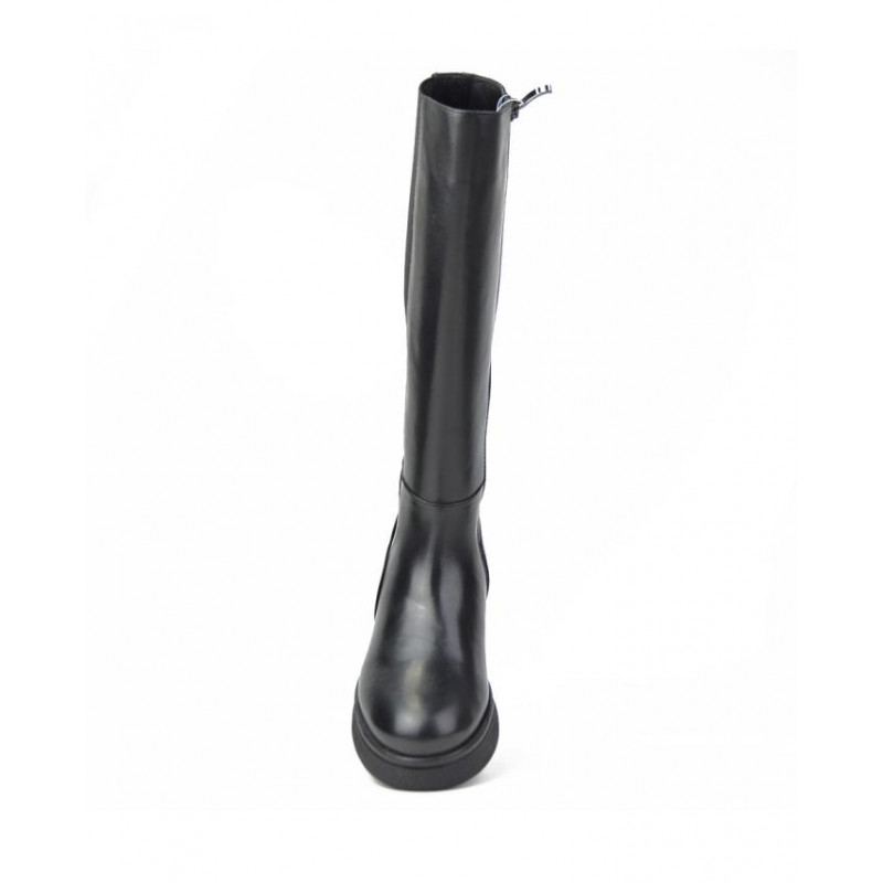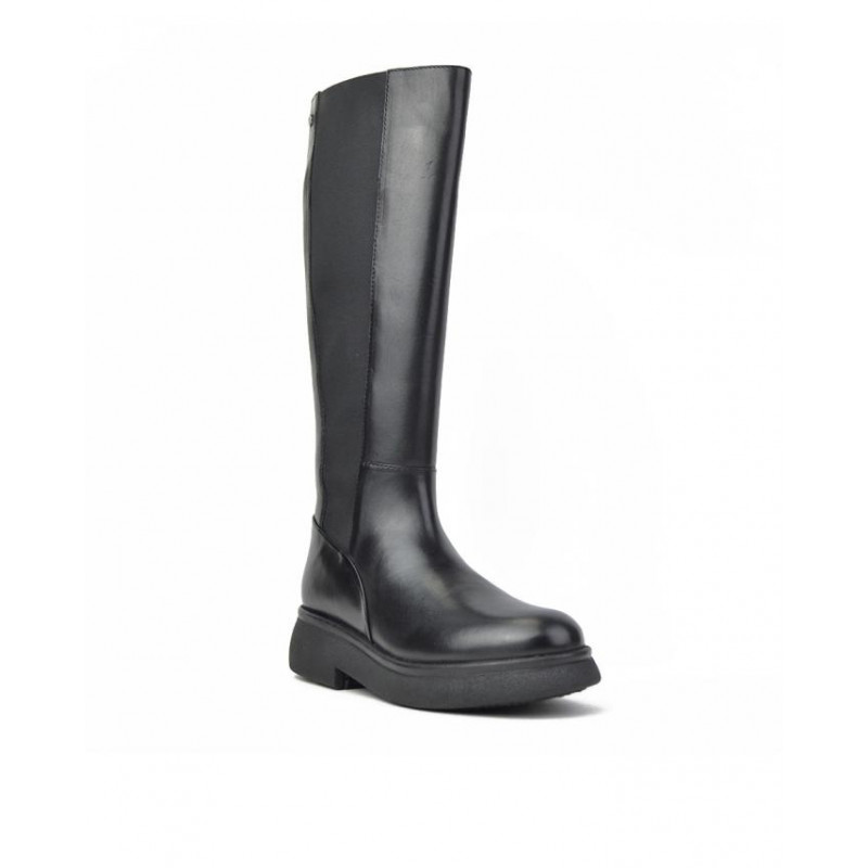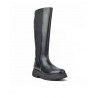 Botas señora Kangaroos en piel negro, con elastico en la parte exterior para un mayor ajuste y cremallera interior para facilitar la puesta y retirada del producto, forro combinado piel vacuno y tejido, plantilla textil extraible termoconformada, caña de 37 cm altura, suela con tacón de 4 cm y plataforma de 3 cm, fabricado en España. Composición: Empeine: Piel. Forro: Piel/Textil, Plantilla: Textil. Suela: Fibra sintetica. Componente principal: Piel