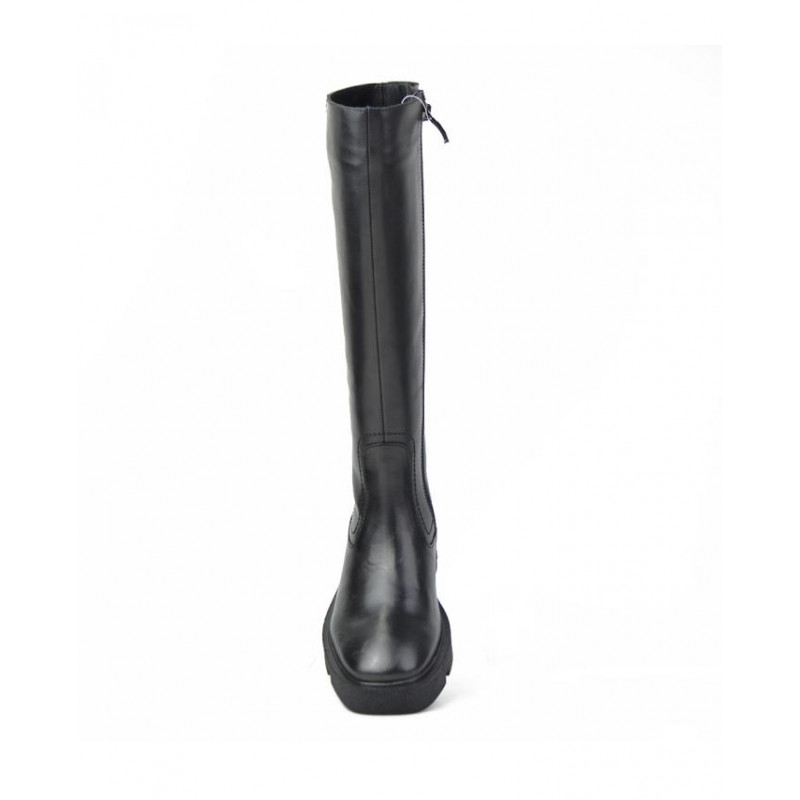 Botas señora Kangaroos en piel negro, con cremallera interior para facilitar la puesta y retirada del producto, forro combinado piel vacuno y tejido, plantilla textil termoconformada, caña de 38 cm altura, suela con tacón de 4 cm y plataforma de 3 cm, fabricado en España. Composición: Empeine: Piel. Forro: Piel/Textil, Plantilla: Textil. Suela: Fibra sintetica. Componente principal: Piel