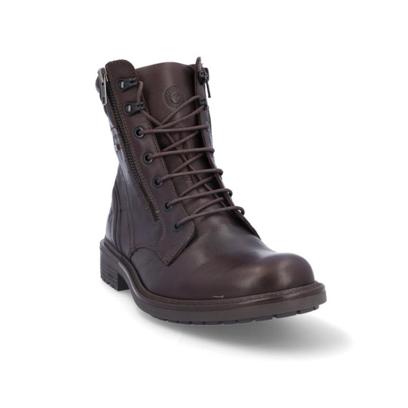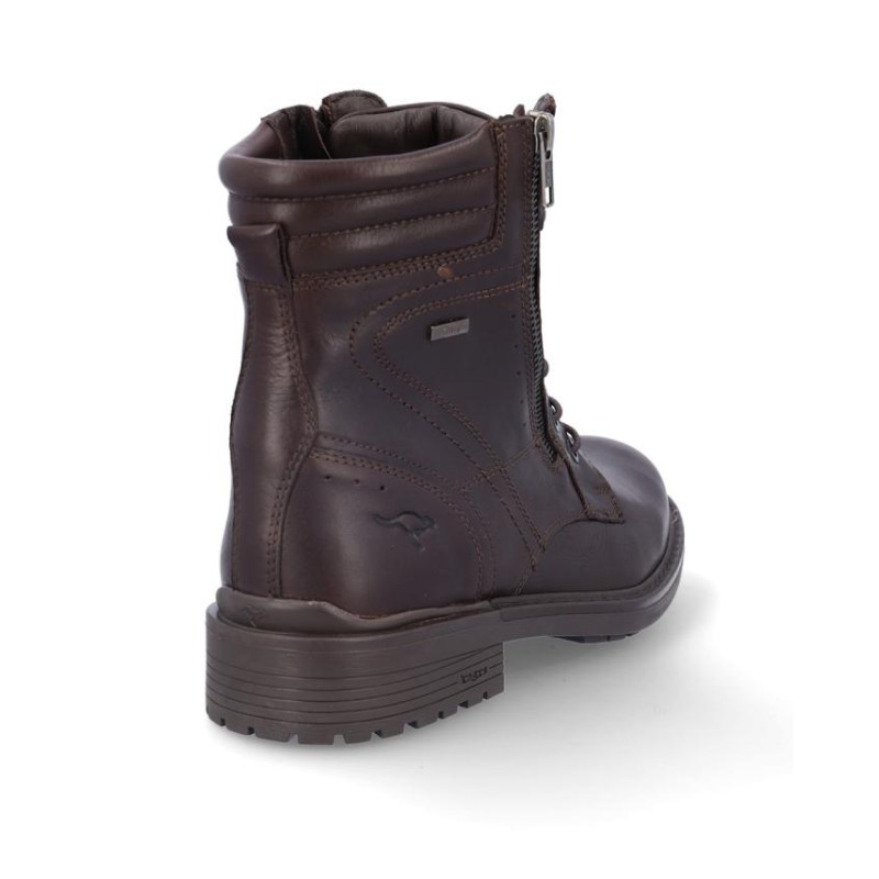 Botas de caballero Kangaroos en piel marron, con membrana resistente al agua y tecnología XDRY. Cierre de cordones y cremallera interior y exterior para facilitar la puesta y retirada. Forro textil con vista de piel, plantilla textil extraíble termoconformada, altura de caña 15 cm, suela con tacón de 4 cm y plataforma de 2 cm altura. Composición: Empeine: Piel. Forro: Piel/textil. Plantilla: Textil. Suela: Fibra sintética. Componente principal: Piel