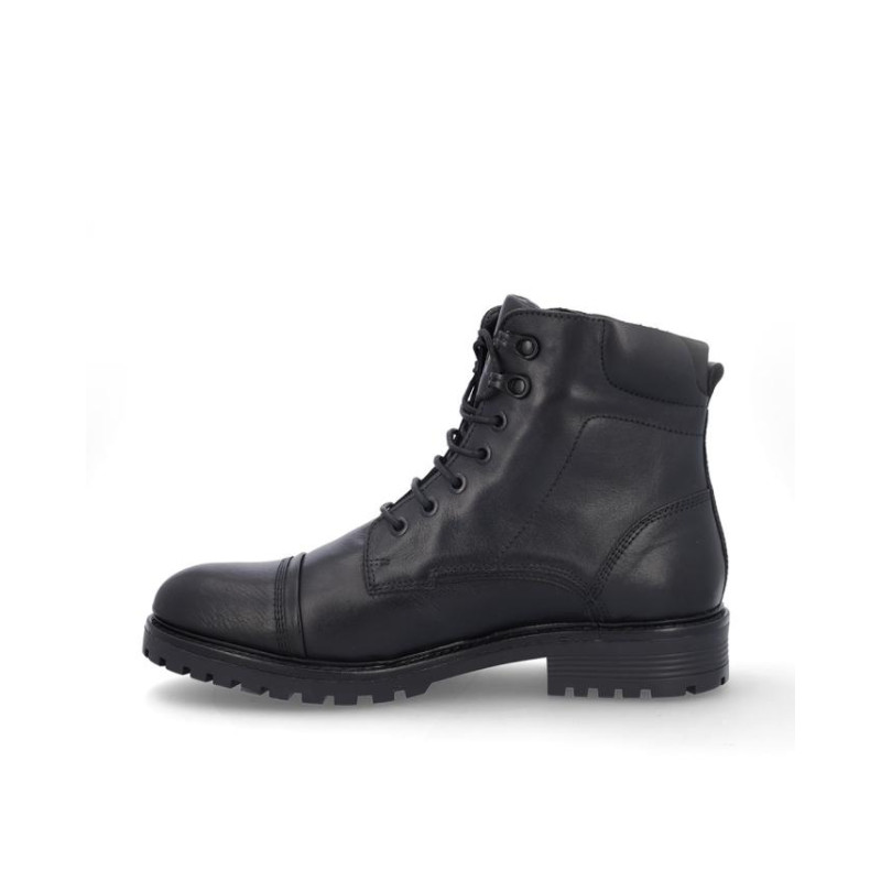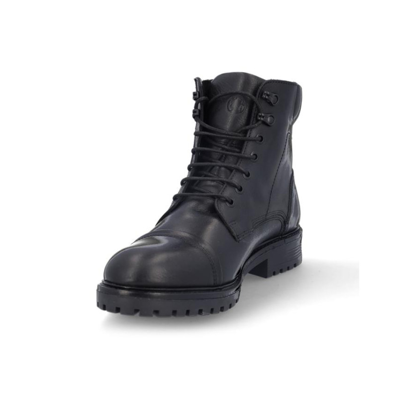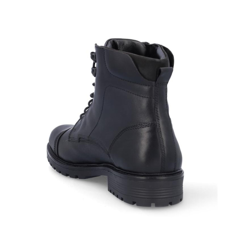 Botas de caballero Coronel Tapiocca en piel negro. Cierre de cordones y cremallera en el lateral exterior, Forro textil con vista de piel, plantilla textil extraible termoconformada, altura de caña 14 cm, suela con tacon de 4 cm y plataforma de 2 cm altura. Fabricado en España. Composición: Empeine: Piel . Forro: Piel/textil. Plantilla: Textil. Suela: Fibra sintetica. Componente principal: Piel