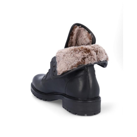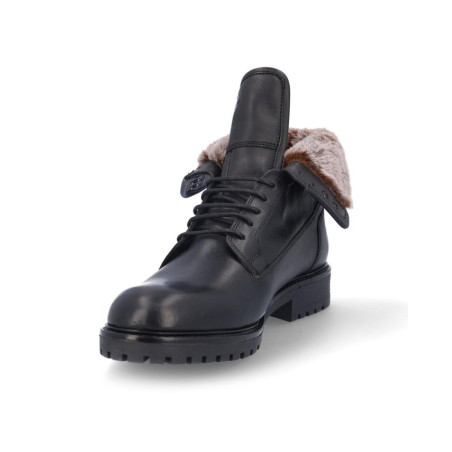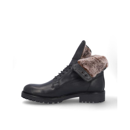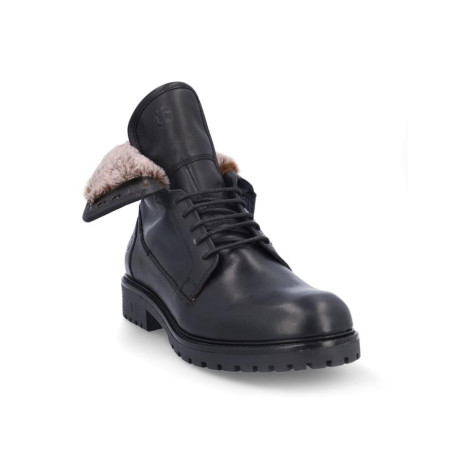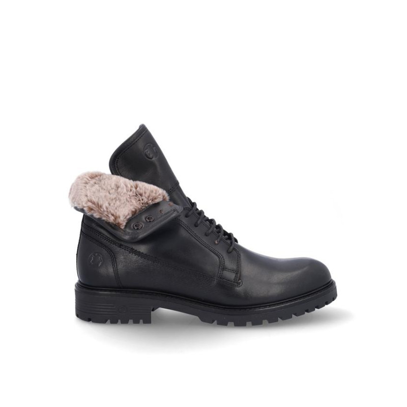 Botas caballero Coronel Tapiocca fabricadas en piel negro, cierre con cordones, forro combinado pelo y textil, plantilla textil extraible, caña de 16 cm altura, suela con tacon de 4 cm y plataforma de 2 cm de plataforma, fabricadas en España. Composición: Empeine: Piel. Forro: Pelo/textil. Plantilla: Textil. Suela: Fibra sintetica. Componente principal: Piel