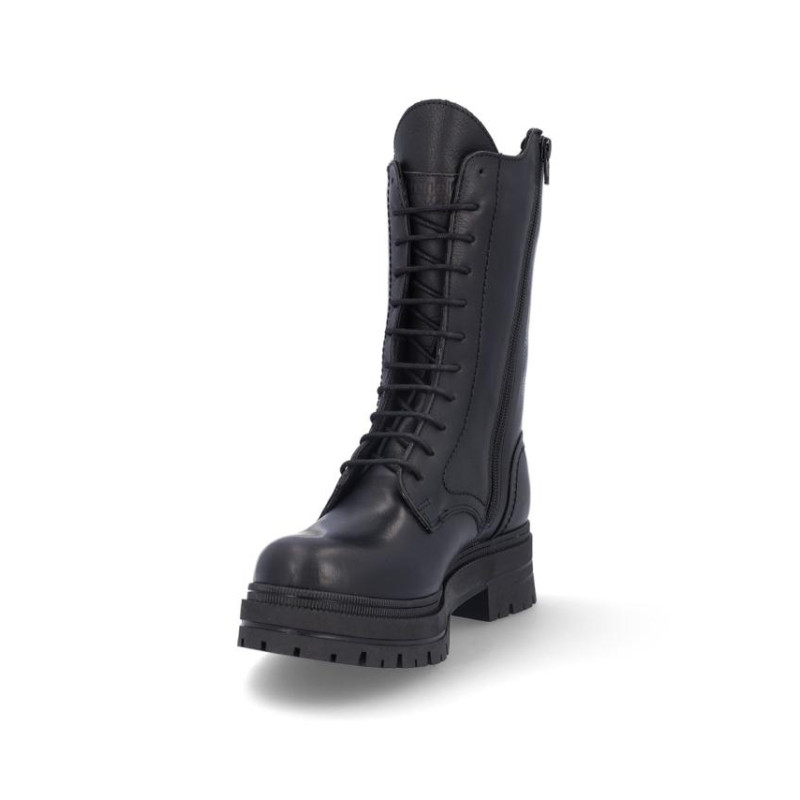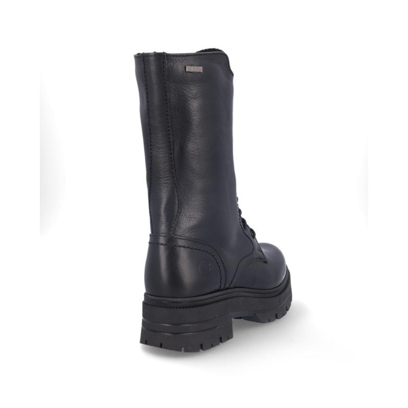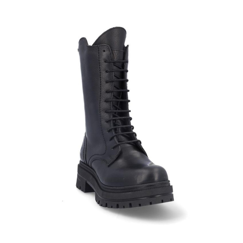 Botas de señora Coronel Tapiocca en piel color negro, con membrana resistente al agua y tecnología XDRY. Cierre de cordones y cremallera interior para facilitar la puesta y retirada del producto. Forro textil con vista de piel, plantilla textil extraible termoconformada, altura de caña 23'5 cm, suela con tacon de 5 cm y plataforma de 3'5 cm altura .Fabricado en España. Composición: Empeine: Piel . Forro: Piel/textil. Plantilla: Textil. Suela: Fibra sintetica. Componente principal: Piel