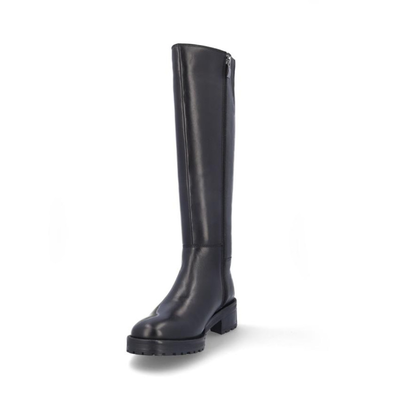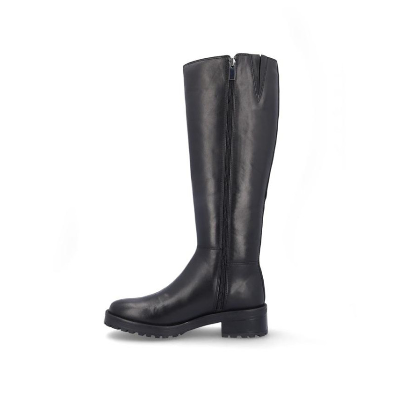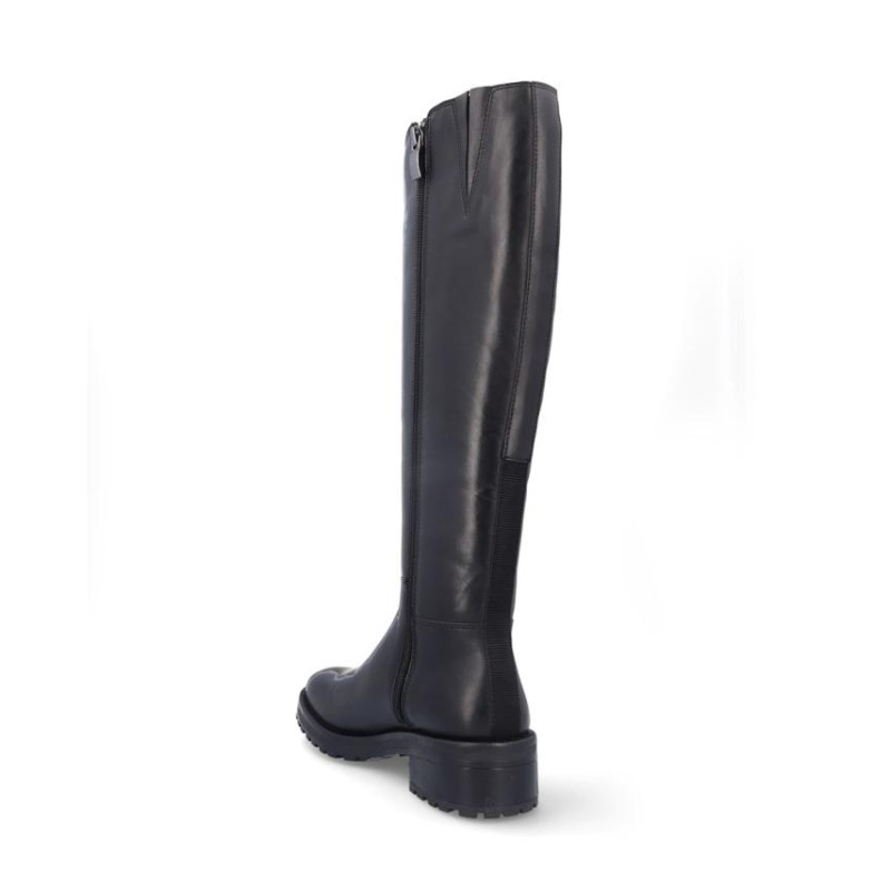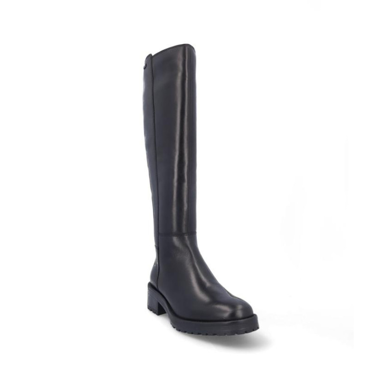 Bota de señora Kangaroos fabricados en piel color negro, cremallera en parte interior para facilitar la puesta y retirada. Forro textil con vista de piel, plantilla textil extraíble termoconformada, caña de 38 cm altura, suela con tacón de 5 cm y plataforma de 3 cm. Composición: Empeine: Piel. Forro y plantilla: Textil. Suela: Fibra sintetica. Componente principal: Piel