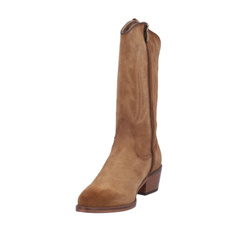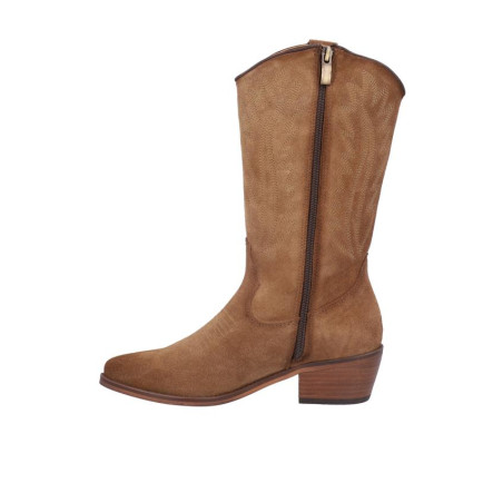 Botas de señora Bonaventure fabricados en serraje color taupe, forro textil con vista de piel, plantilla piel, con cremallera en la parte interior para facilitar la puesta y retirada del producto, altura de caña 29 cm, suela con tacon de 4'5 cm y plataforma de 1 cm altura. Composición: Empeine: Serraje. Forro: Piel/textil. Plantilla: piel. Suela: Fibra sintetica. Componente principal: Serraje