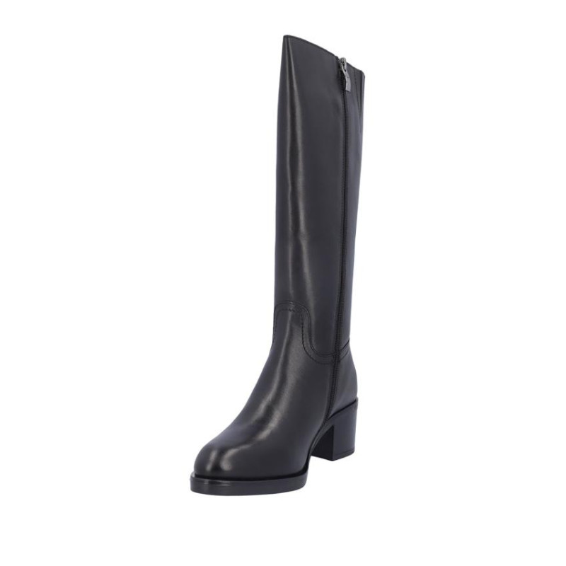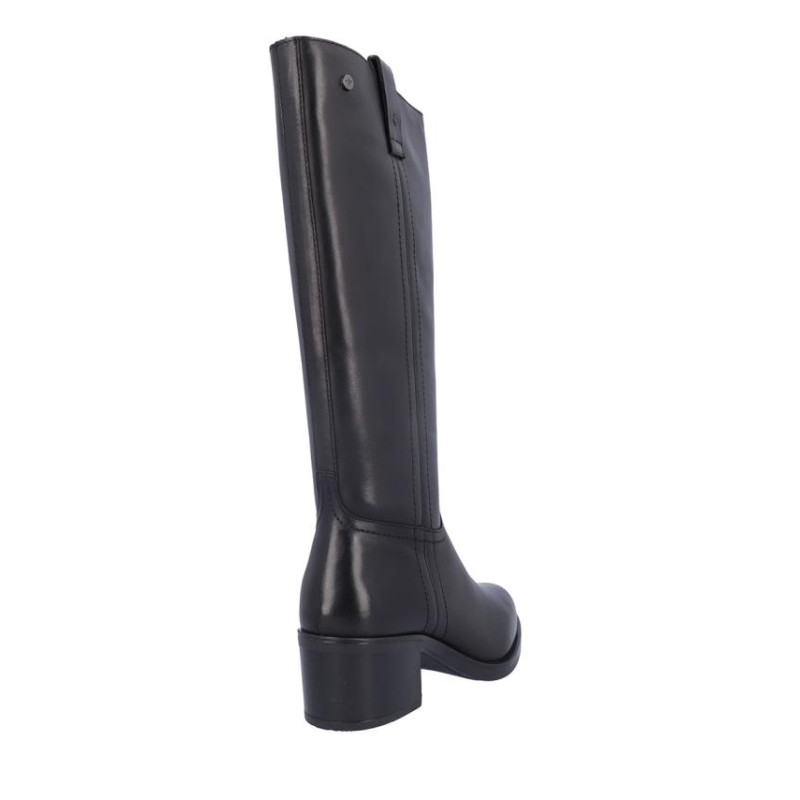 Botas de señora Kangaroos en piel color negro. Con cremallera en parte interior para facilitar la puesta y retirada. Forro textil con vista de piel, textil extraíble termoconformada, altura de caña 35 cm, suela con tacón de 5'5 cm y plataforma de 1'5 cm altura. Composición: Empeine: Piel. Forro: Piel/textil. Plantilla: Piel. Suela: Fibra sintética. Componente principal: Piel