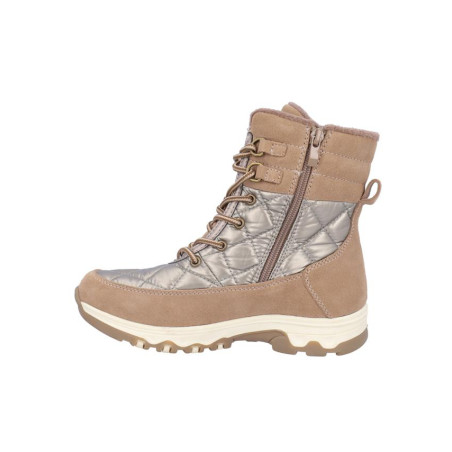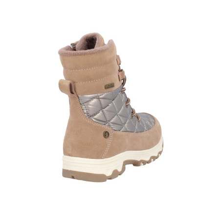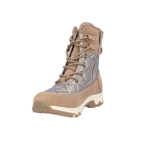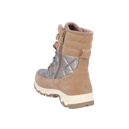 Botines impermeables Coronel Tapiocca mujer, fabricado en serraje y tejido resistente al agua color taupe, forro de tejido, cierre de cordones y cremallera interior para facilitar la puesta y retirada del producto, plantilla textil extraible termoconformada, altura de caña 15 cm, altura de suela 3 cm. Composición: Empeine: textil. Forro y plantilla: Textil. Suela: Fibra sintetica. Componente principal: textil