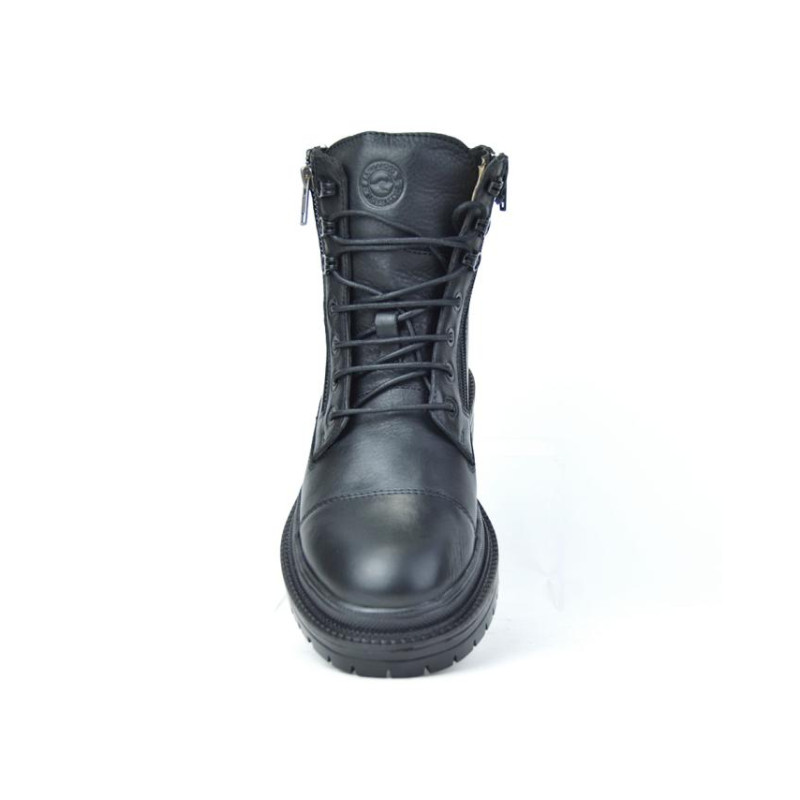 Botas Kangaroos caballero en piel negro, cierre de cordones y dos cremalleras, forro piel y textil, plantilla extraible textil muy cómoda, caña de 12-14 cm, suela de casco de 3,5 cm altura, fabricado en España. Composición: Empeine: Piel. Forro: Piel/Textil. Plantilla: Textil. Suela: Fibra sintética. Componente principal: Piel