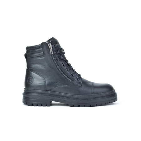 Botas Kangaroos caballero en piel negro, cierre de cordones y dos cremalleras, forro piel y textil, plantilla extraible textil muy cómoda, caña de 12-14 cm, suela de casco de 3,5 cm altura, fabricado en España. Composición: Empeine: Piel. Forro: Piel/Textil. Plantilla: Textil. Suela: Fibra sintética. Componente principal: Piel