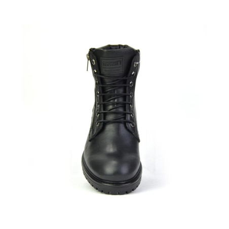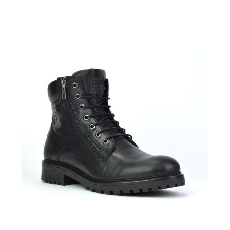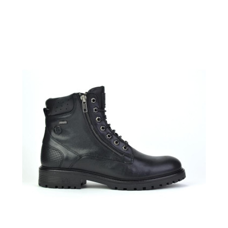 Botas caballero Coronel Tapiocca fabricadas en piel negro, cierre de cordones y cremallera exterior, forro combinado piel vacuno y textil con membrana resistente al agua con tecnología XDRY, plantilla textil extraible termoconformada muy cómoda, altura de caña 14 cm, suela con 3,5 cm de tacón y 1,5 cm de plataforma, fabricadas en España. Composición: Empeine: Piel. Forro y plantilla: Textil. Suela: Fibra sintetica. Componente principal: Piel