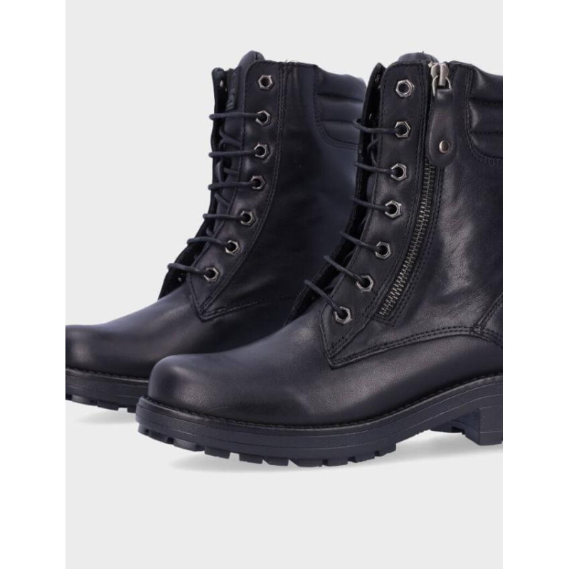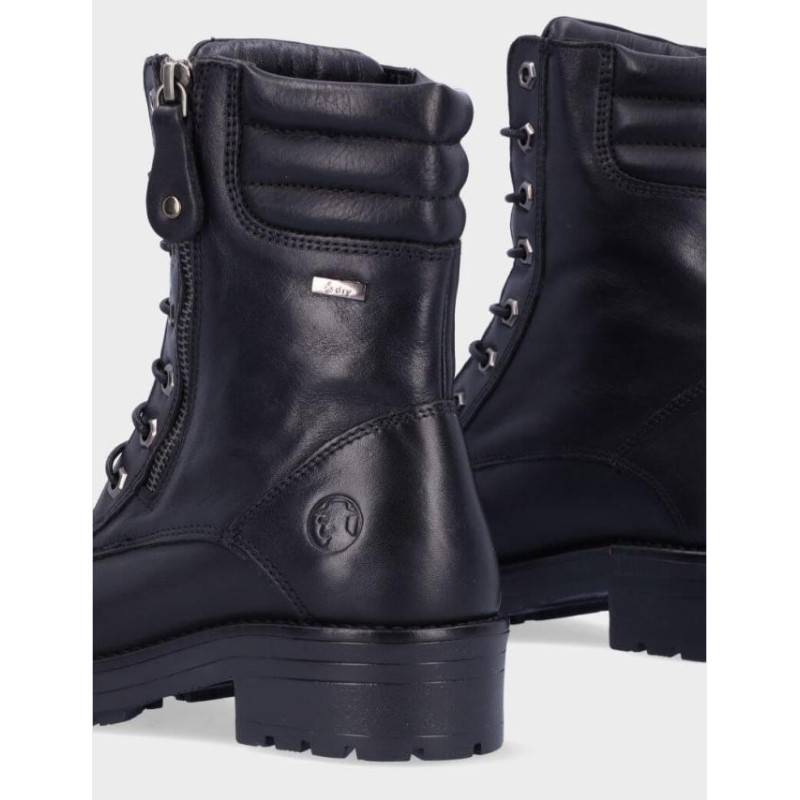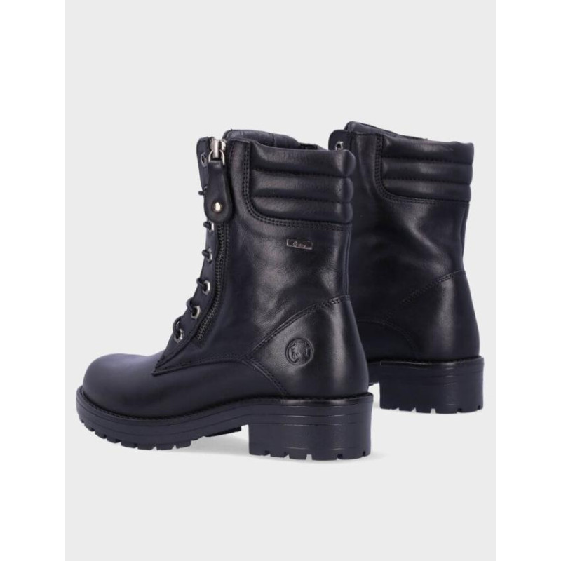 Botas de señora Coronel Tapiocca fabricados en piel negro de vacuno de primera calidad, forro combinado piel vacuno y textil con membrana resistente al agua y tecnología XDRY, plantilla textil extraible termoconformada, caña de 16 cm altura, suela con tacón de 4 cm y plataforma de 2 cm, cierre de cordones y cremallera lateral, fabricado en España. Composición: Empeine: Piel. Forro y plantilla: Textil. Suela: Fibra sintetica. Componente principal: Piel