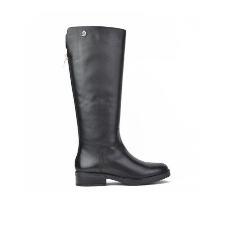 Botas de señora El Caballo fabricados en piel negro vacuno de primera calidad, forro textil con vista de piel, plantilla piel, con cremallera en la parte trasera para facilitar la puesta y retirada del producto, caña de 38 cm altura, suela con tacón de 3 cm y plataforma de 1,5 cm. Composición: Empeine: piel. Forro: Piel/textil. Plantilla: Piel. Suela: Fibra sintetica. Componente principal: Piel