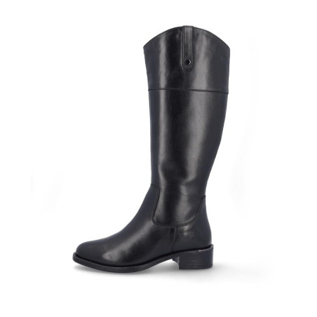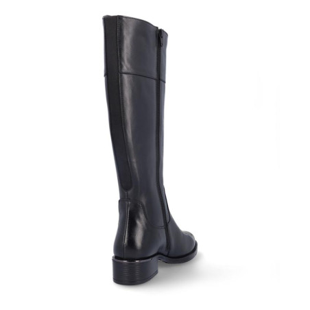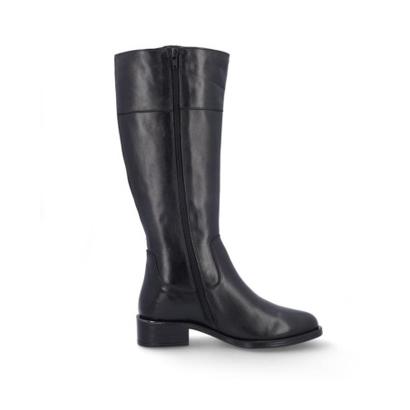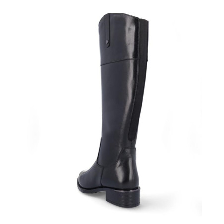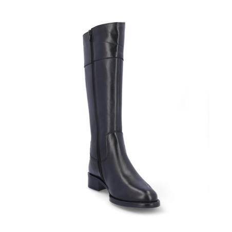 Botas de señora El Caballo fabricados en piel color negro. Forro textil con vista de piel, plantilla piel, con cremallera en parte interior para facilitar la puesta y retirada del producto, altura de caña 37 cm, suela con tacon de 3'5 cm y plataforma de 1'5 cm altura. Composición: Empeine: Piel. Forro: Piel/textil. Plantilla: Piel. Suela: Fibra sintetica. Componente principal: Piel