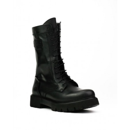 BOTA MILITAR MUJER, ALTURA CAÑA 22 CM., PIEL VACUNO, CORDONES, CREMALLERA INTERIOR, COLOR NEGRO, SUELA EXTRA LIGHT, TACON 4 CM., PLATAFORMA 3 CM., PLANTILLA EXTRAIBLE, FABRICADO EN ESPAÑA