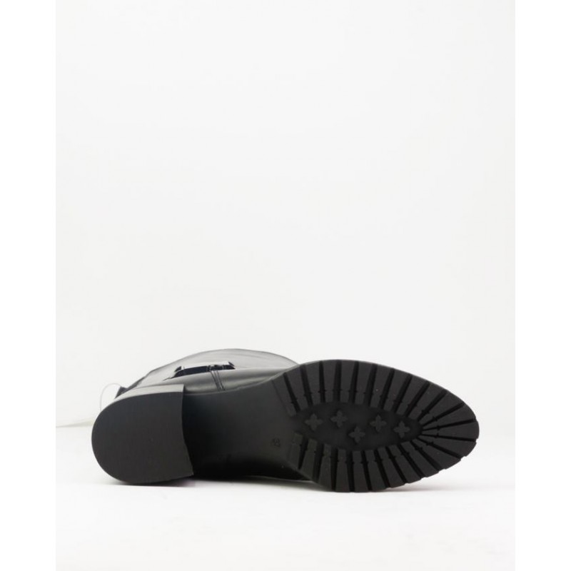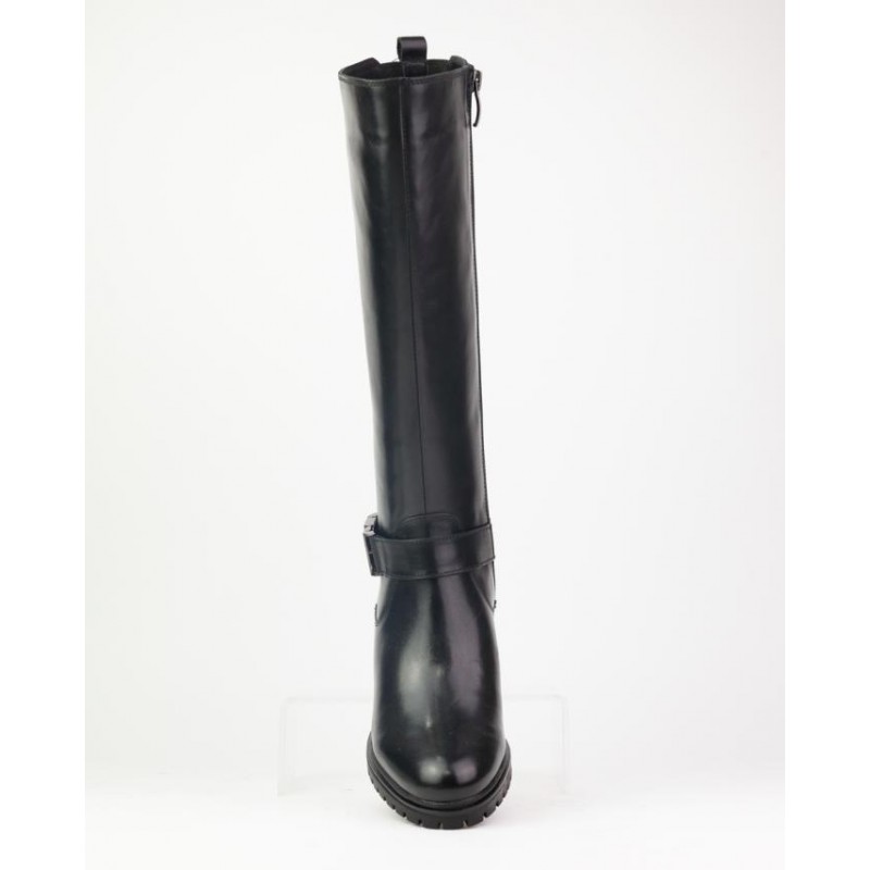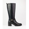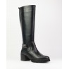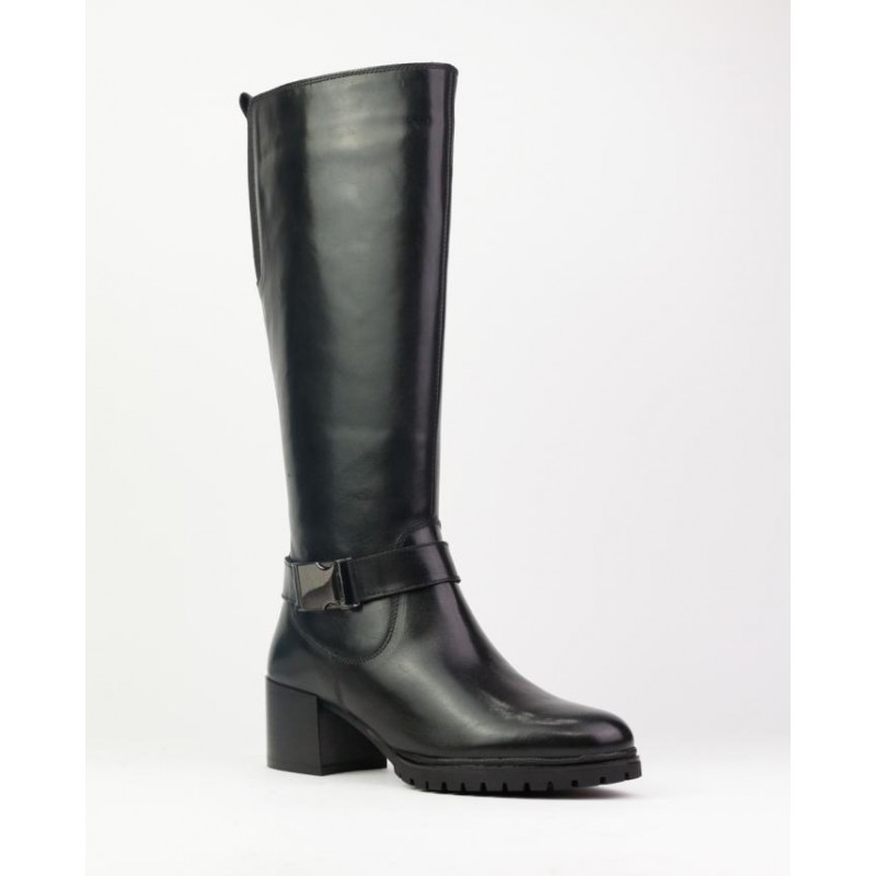 Bota El Caballo mujer en negro. Utilizamos pieles vacunos de gran calidad para la obtención del resultado buscado, un producto premium. Bota con forro piel vacuno y tejido combinado. Plantilla en piel. Detalle hebilla gancho en metalico. Altura de caña 35 cm. Elastico trasero en parte superior. Tacón de 5.5 cm de altura y plataforma de 1.5 cm. Suela goma en puntera para un mejor agarre.