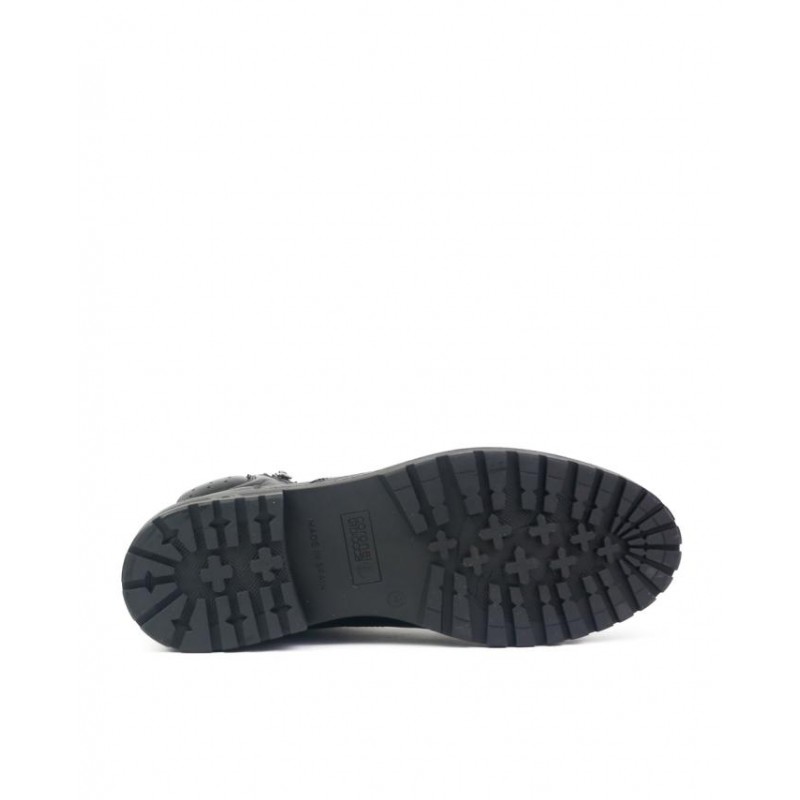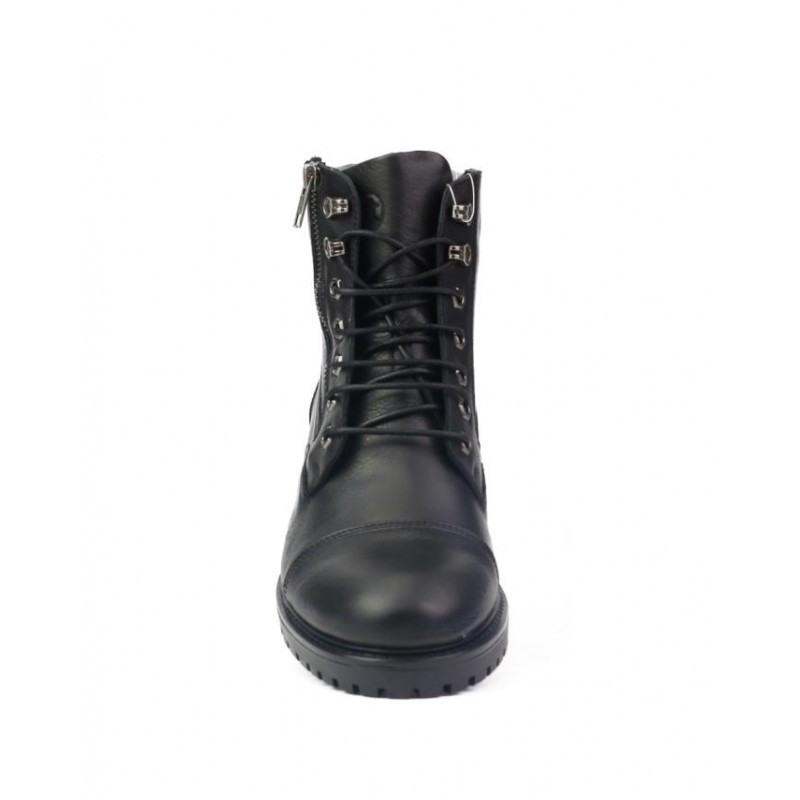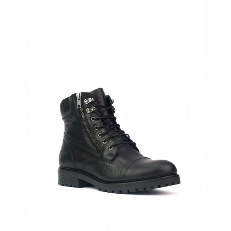 Botas resistentes al agua Coronel Tapiocca en Piel. Fabricado en piel vacuno negro de primera calidad. Consta de cordones para ajuste al pie y una cremallera exterior metálica. Forro textil con membrana resistente al agua. Altura de cañan 13 cm aprox. Puntera con doble pieza. Suela con 3.5 cm de tacón, y vira melope piel con pespuntes. Fabricado en España.