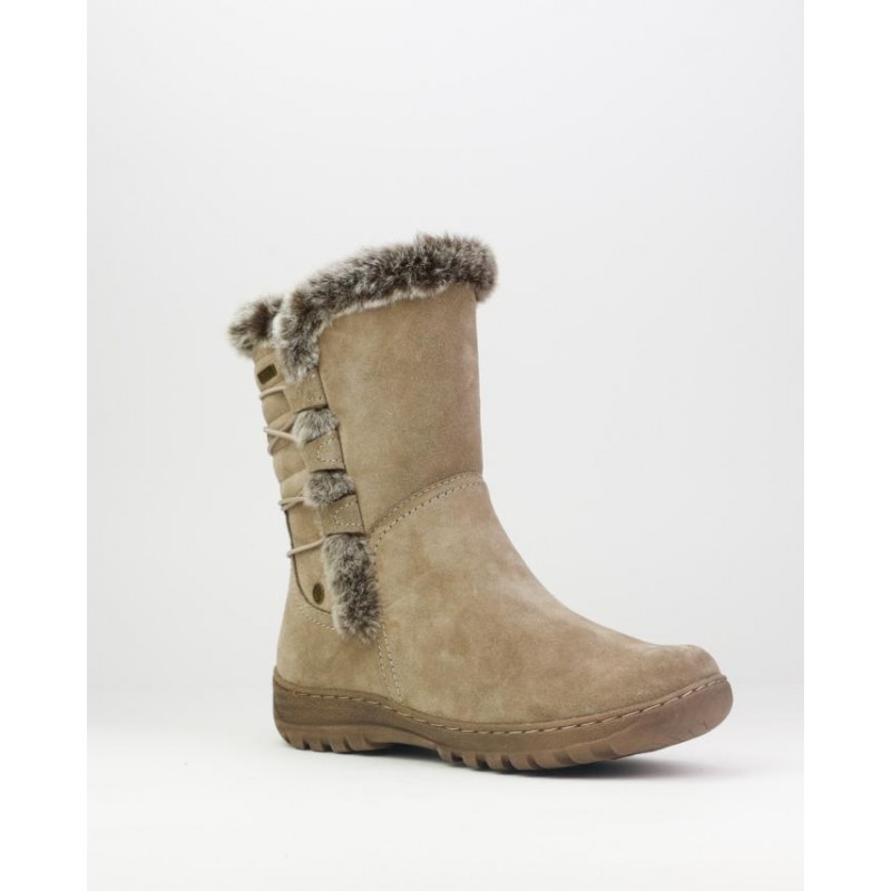 Botas impermeables Coronel Tapiocca Mujer Taupe. Fabricado en serraje resistente al agua. Cierre cremallera interior para facilitar puesta y retirada. Altura de caña 17.5 cm. Altura de suela 3 cm. Forro interior en pelo. Elasticos traseros a modo de adorno en bota. Water Resistant.