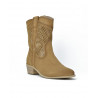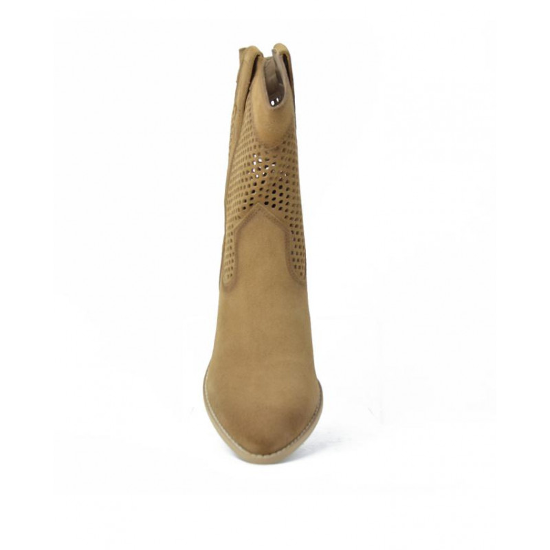 Botín cowboy de señora fabricado en serraje perforado color arena (beige), sin forro y plantilla de piel, altura de la caña de unos 16 cm, altura del tacón de 4 cm. Composición: Empeine: Piel. Forro: Sin forro. Plantilla: Piel. Suela: Fibra sintética. Componente principal: Piel