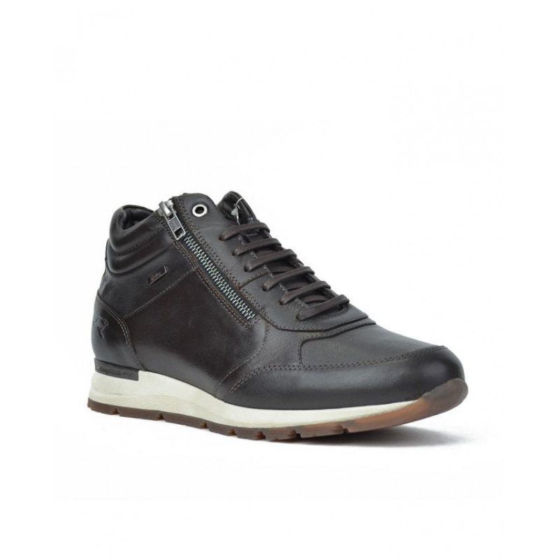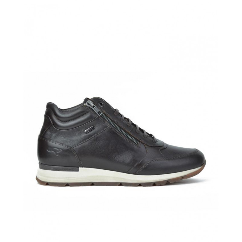 Botines hombre kangaroos fabricado en piel marron, cierre de cordones y cremallera latera para facilitar la puesta y retirada del producto, forro combinado piel vacuno y tejido con membrana resistente al agua y tecnología XDRY, plantilla textil extraible termoconformada, caña de 10 cm altura, suela de 3 cm de altura, fabricado en España.Composición: Empeine: Piel. Forro: Piel/Textil. Plantilla: Textil. Suela: Fibra sintética. Componente principal: Piel