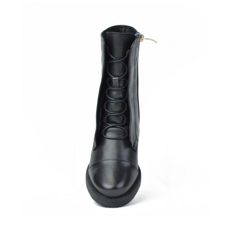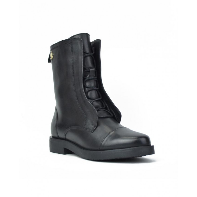 Botines de señora El Caballo fabricados en piel negro vacuno de primera calidad, forro textil con vista de piel, plantilla piel, cierre con cordones y cremallera en la parte interior para facilitar la puesta y retirada del producto, caña de 19,5 cm altura, suela con tacón de 3 cm y plataforma de 1,5 cm. Composición: Empeine: piel. Forro: Piel/textil. Plantilla: Piel. Suela: Fibra sintetica. Componente principal: Piel