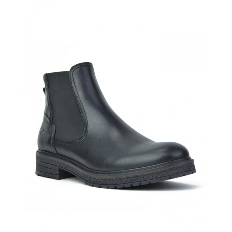 Botines hombre Kangaroos fabricados en piel negro, elástico laterial y cremallera interior para facilitar la puesta y retirada del producto, forro combinado piel vacuno y tejido, plantilla textil extraible termoconformada, caña de 14 cm altura, suela con tacón de 4 cm y plataforma de 2,5 cm, fabricado en España. Composición: Empeine: Piel. Forro: Piel/Textil, Plantilla: Textil. Suela: Fibra sintetica. Componente principal: Piel