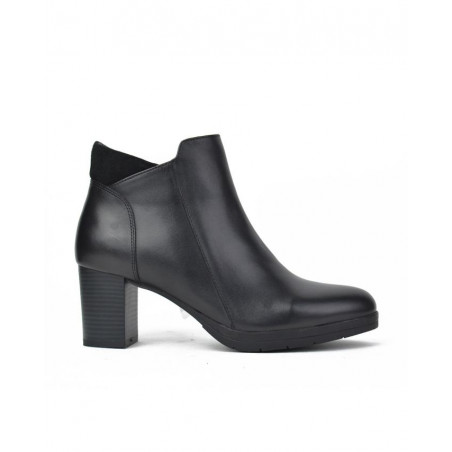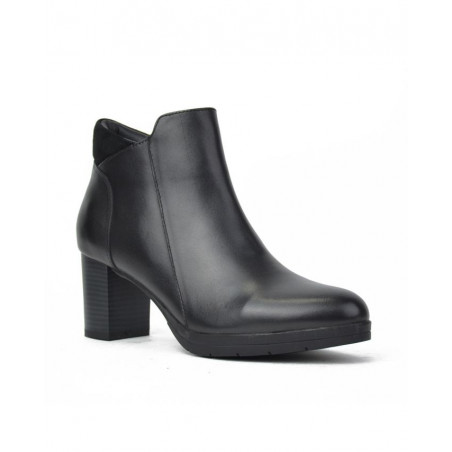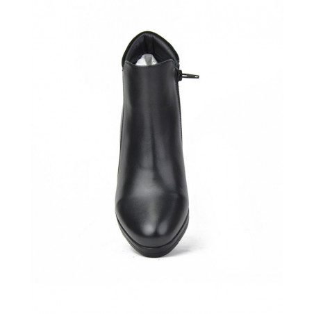 Botines de señora Javier Larrainzar fabricados en piel negro de vacuno de primera calidad, cremallera interior para mayor comodidad en la puesta y retirada del producto, forro textil, plantilla piel, caña de 9 cm altura, suela con tacón de 7 cm y plataforma de 2 cm. Composición: Empeine: Piel. Forro: Textil. Plantilla: Piel. Suela: Fibra sintetica. Componente principal: Piel.