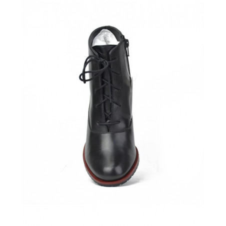 Botin de señora Javier Larrainzar fabricados en piel negro de vacuno de primera calidad, cierre con cordones, forro textil, plantilla piel , caña de 10 cm altura, suela con tacón de 5,5 cm y plataforma de 1 cm. Composición: Empeine: Piel. Forro: Textil. Plantilla: Piel. Suela: Fibra sintetica.Componente principal: Piel.