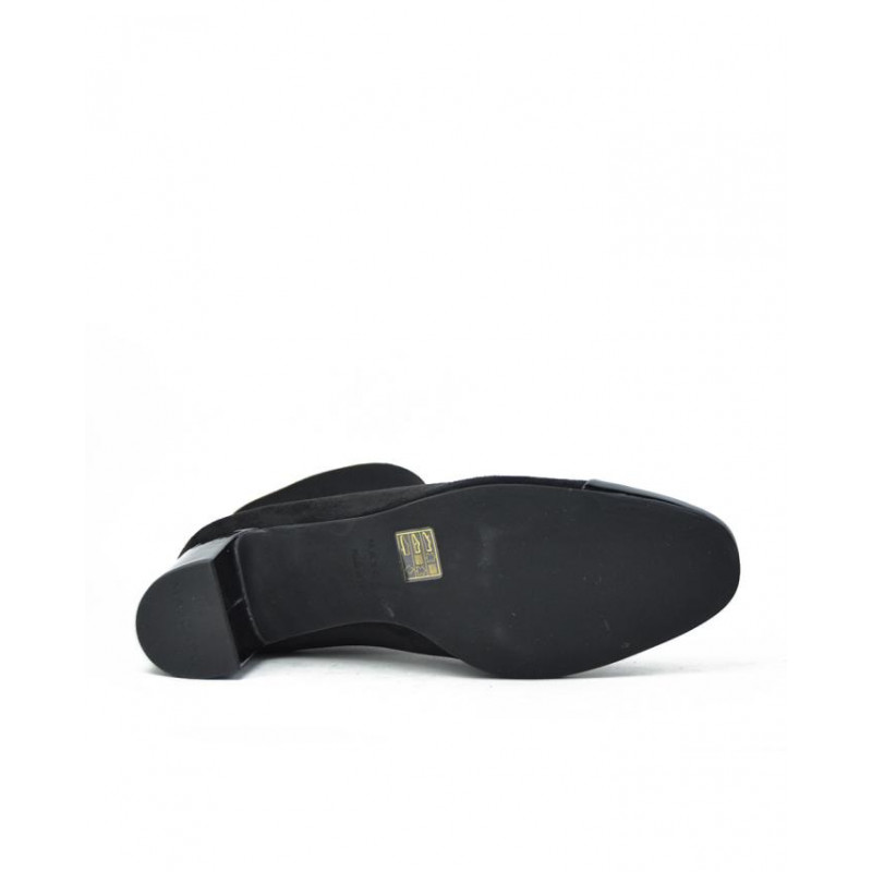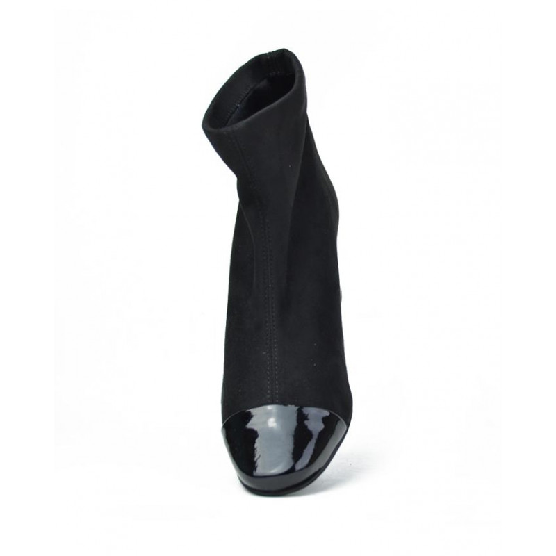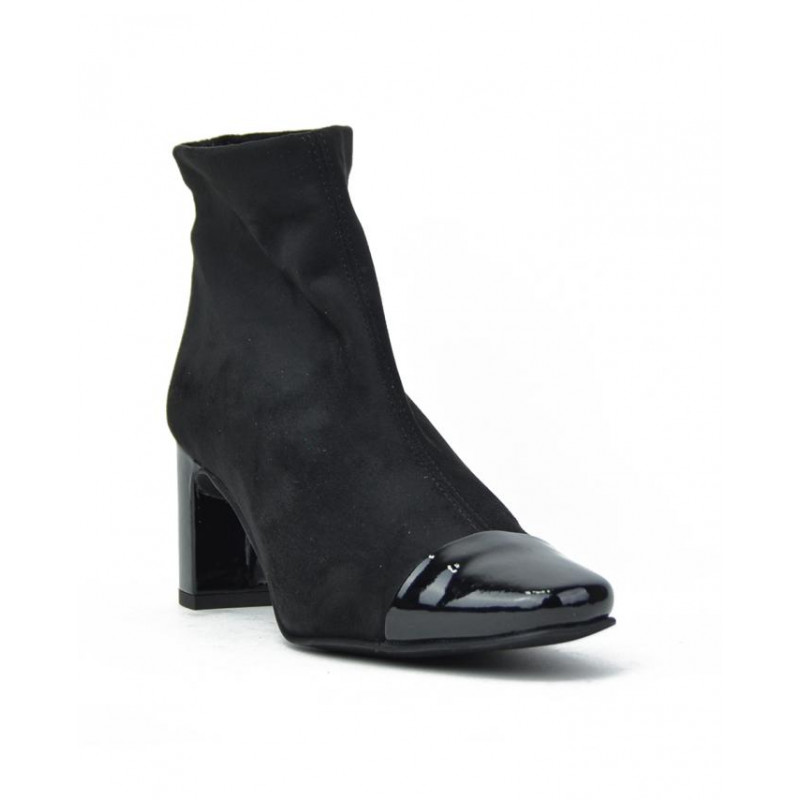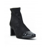 Botines textil de señora Mascaro en negro con puntera y tacon de charol negro, caña de 13 cm altura, tacón de 7 cm y plataforma de 1 cm, suela personalizada de fibra sintética. Composición: Empeine: Textill. Forro: Textil. . Suela: Fibra sintética. Componente principal: textil