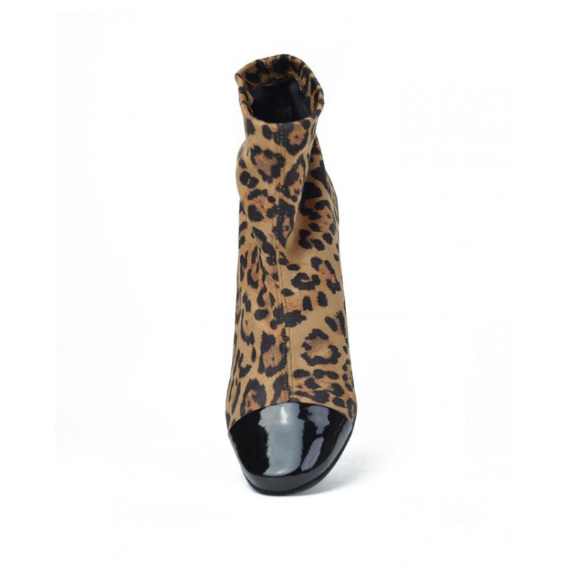 Botines textil de señora Mascaro en leopardo con tacon forrado en leopardo y puntera de charol negro, caña de 13 cm altura, tacón de 7 cm y plataforma de 1 cm, suela personalizada de fibra sintética. Composición: Empeine: Textill. Forro: Textil. . Suela: Fibra sintética. Componente principal: textil