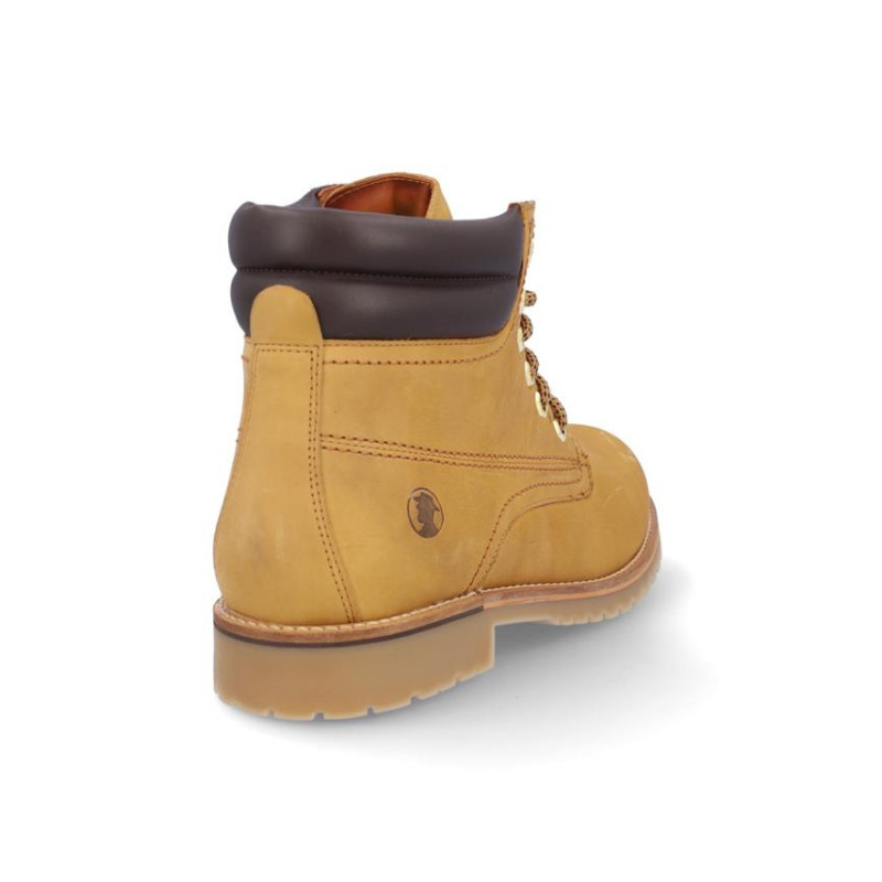 Botines de caballero Coronel Tapiocca en nobuck mostaza. Cierre de cordones. Forro textil con vista de piel, plantilla textil extraible termoconformada, altura de caña 13 cm, suela con tacon de 3 cm y plataforma de 2 cm altura. Fabricado en España. Composición: Empeine: Piel . Forro: Piel/textil. Plantilla: Textil. Suela: Fibra sintetica. Componente principal: Nobuck