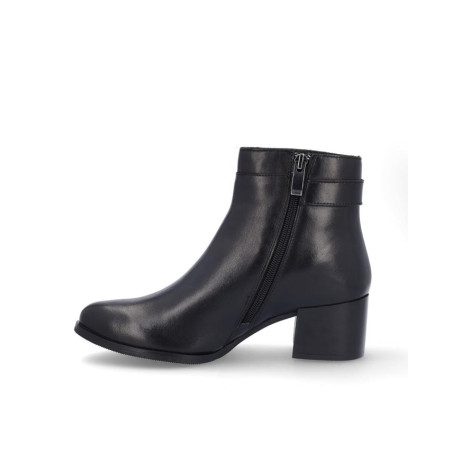 Botines de señora Elio Berhanyer fabricados en piel color negro, con hebilla decorativa en parte exterior. Forro textil con vista de piel, plantilla piel, con cremallera en la parte interior para facilitar la puesta y retirada del producto, altura de caña 13 cm, suela con tacon de 5 cm y plataforma de 1 cm altura. Composición: Empeine: Piel. Forro: Piel/textil. Plantilla: Piel. Suela: Fibra sintetica. Componente principal: Piel