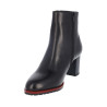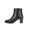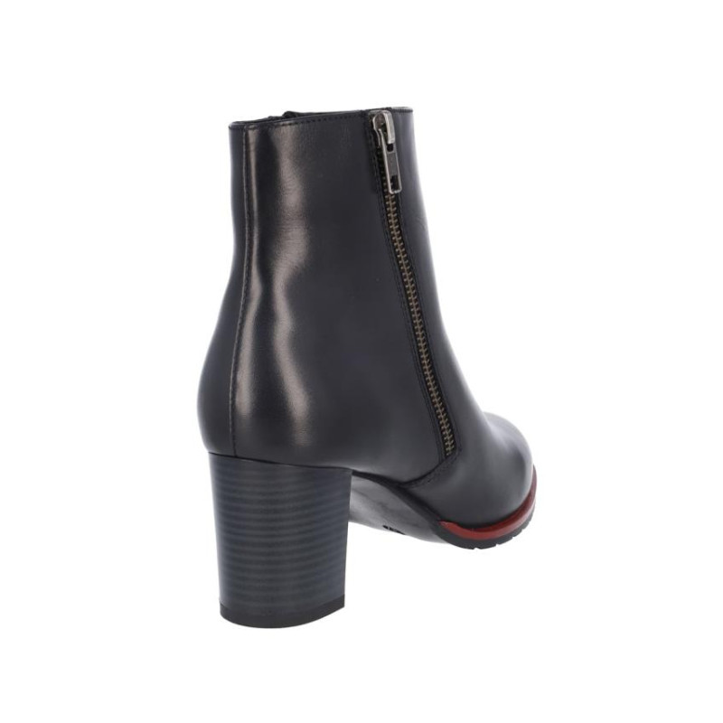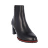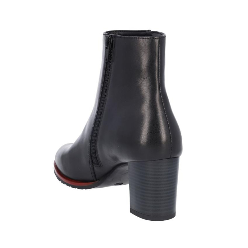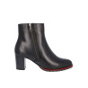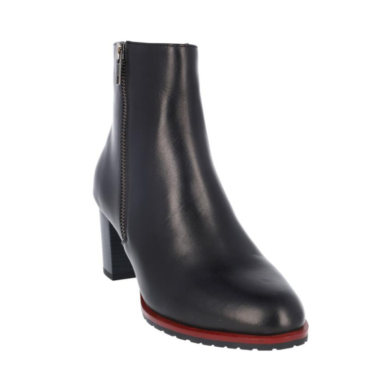 Botines de señora Javier Larrainzar fabricados en piel color negro, con cremallera decorativa en parte exterior. Forro textil con vista de piel, plantilla piel, con cremallera en parte interior para facilitar la puesta y retirada del producto, altura de caña 13 cm, suela con tacon en color rojo de 6'5 cm y plataforma de 1 cm altura. Composición: Empeine: Piel. Forro: Piel/textil. Plantilla: Piel. Suela: Fibra sintetica. Componente principal: Piel