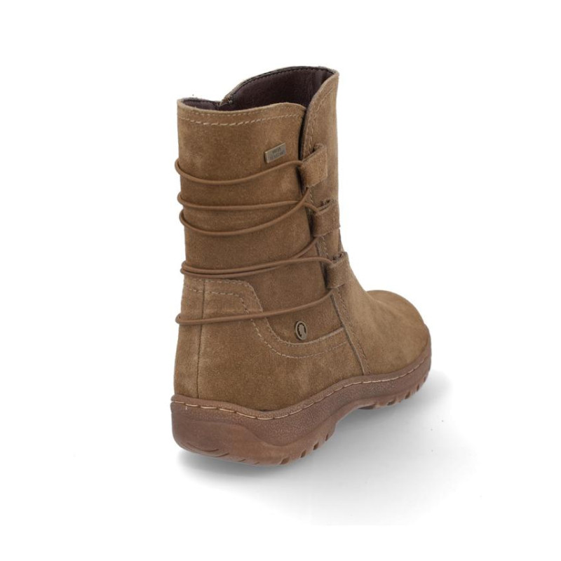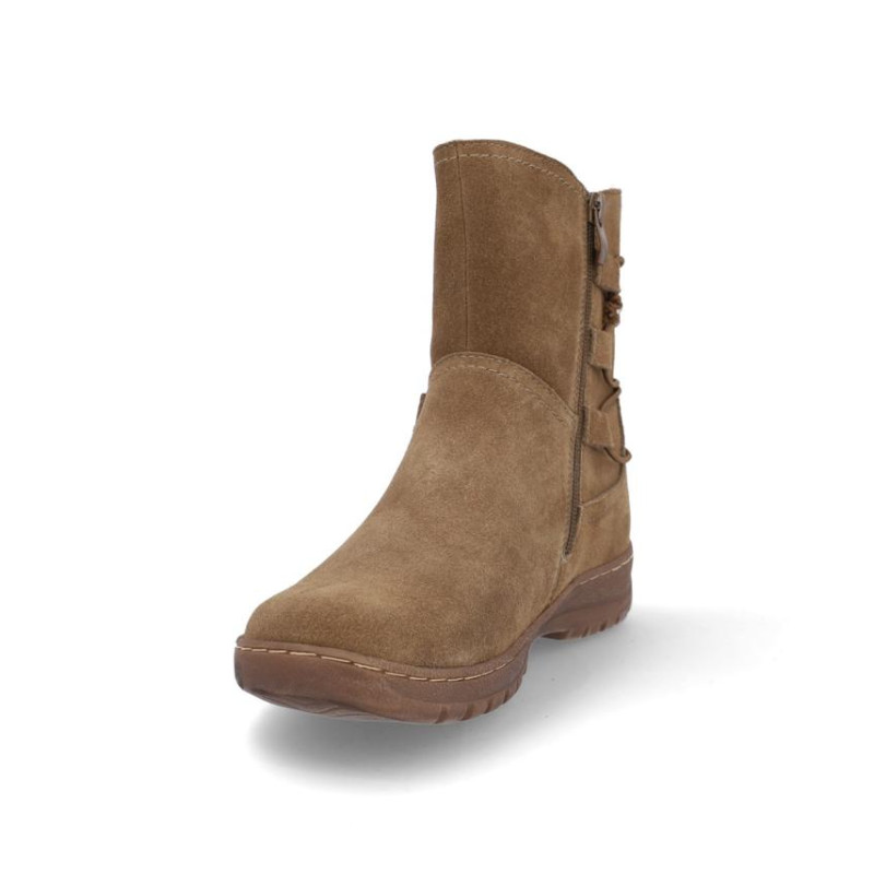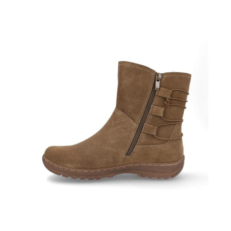 Botines impermeables de señora Coronel Tapiocca en serraje color arena. Forro textil con vista de piel, plantilla textil, con cremallera en parte interior para facilitar la puesta y retirada, altura de caña 15 cm, suela de 3 cm. Composición: Empeine: Serraje. Forro: Piel/textil. Plantilla: textil. Suela: Fibra sintética. Componente principal: Serraje
