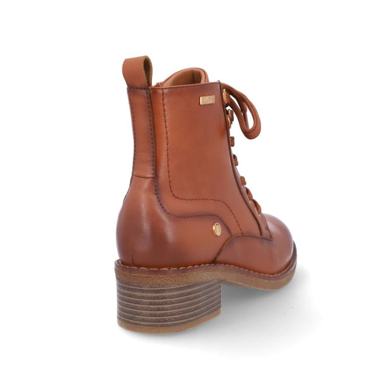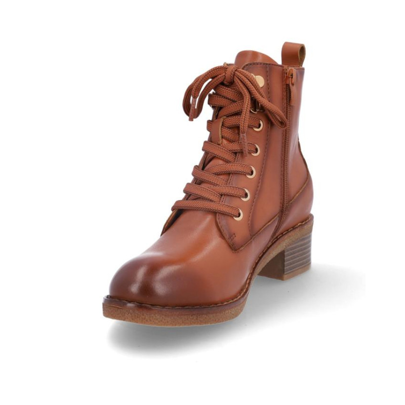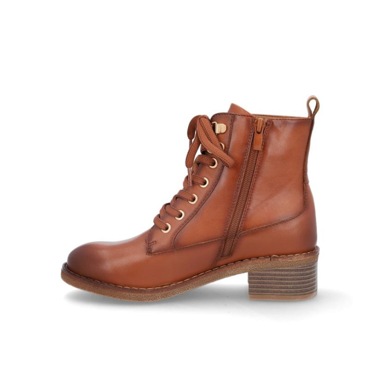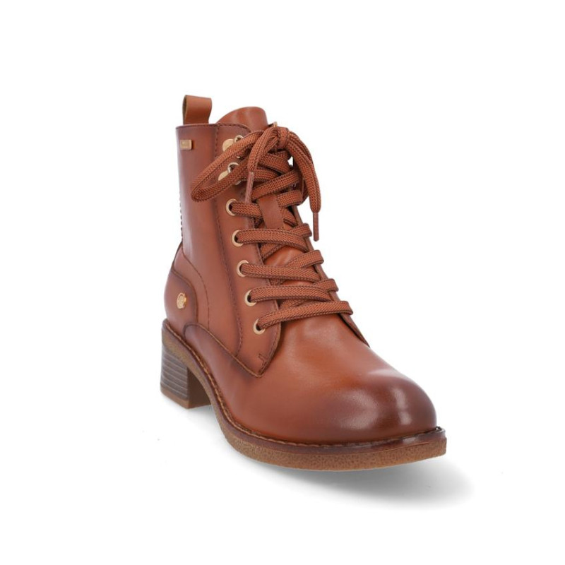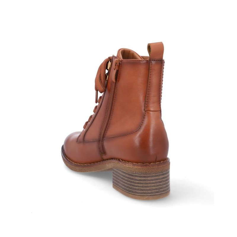 Botines de señora Coronel Tapiocca en piel color camel, resistente al agua, cierre de cordones y cremallera en parte interior para facilitar la puesta y retirada, Forro textil con vista de piel, plantilla textil, altura de caña 13 cm, suela con tacón de 5 cm y plataforma de 1'5 cm. Composición: Empeine: Piel. Forro: Textil/piel. Plantilla: Textil. Suela: Fibra sintética. Componente principal: Piel