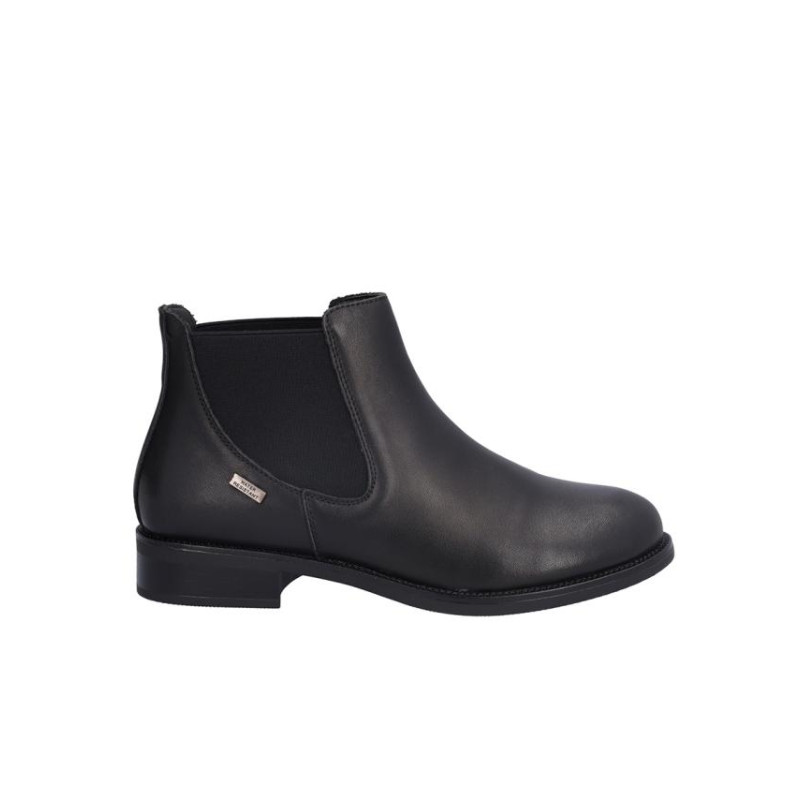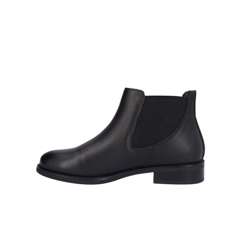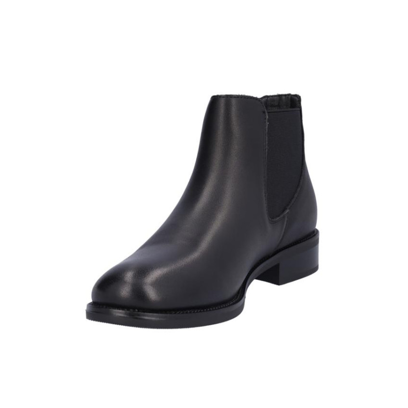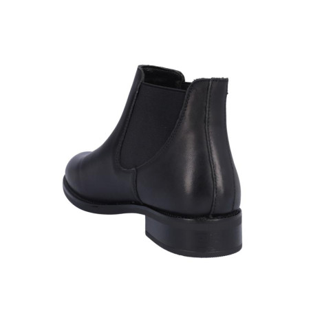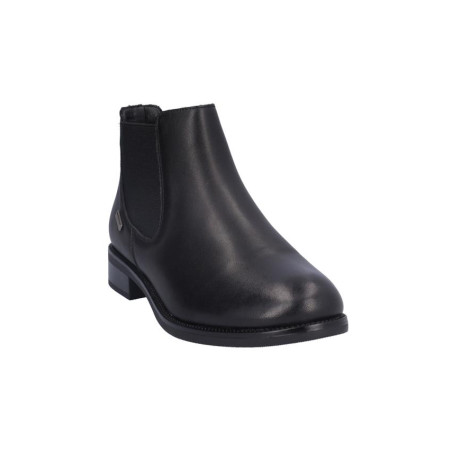 Botines impermeables de señora Bonaventure fabricados en piel negro, forro textil con vista de piel, plantilla textil, con elasticos laterales para facilitar la puesta y retirada del producto, altura de caña 10 cm, suela con tacon de 3 cm y plataforma de 1 cm altura. Composición: Empeine: Piel. Forro Piel/Textil. Plantilla: Textil. Suela: Fibra sintetica. Componente principal: Piel
