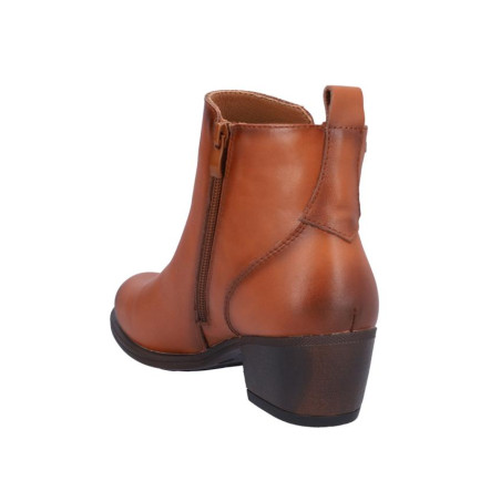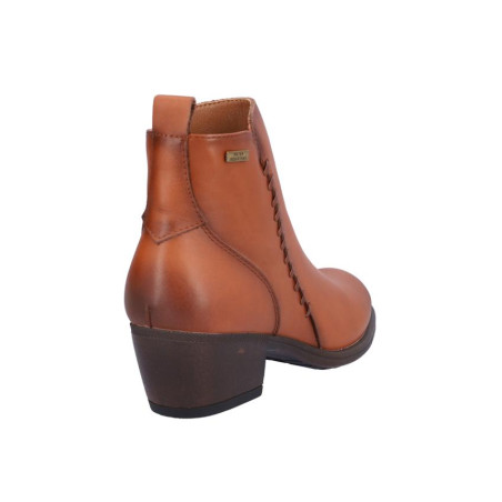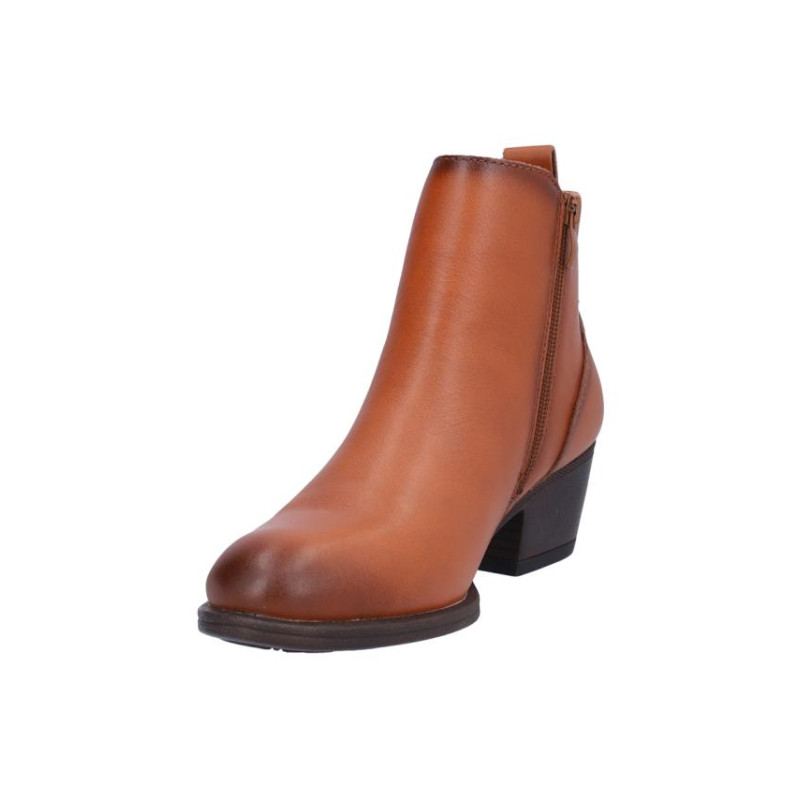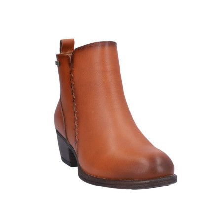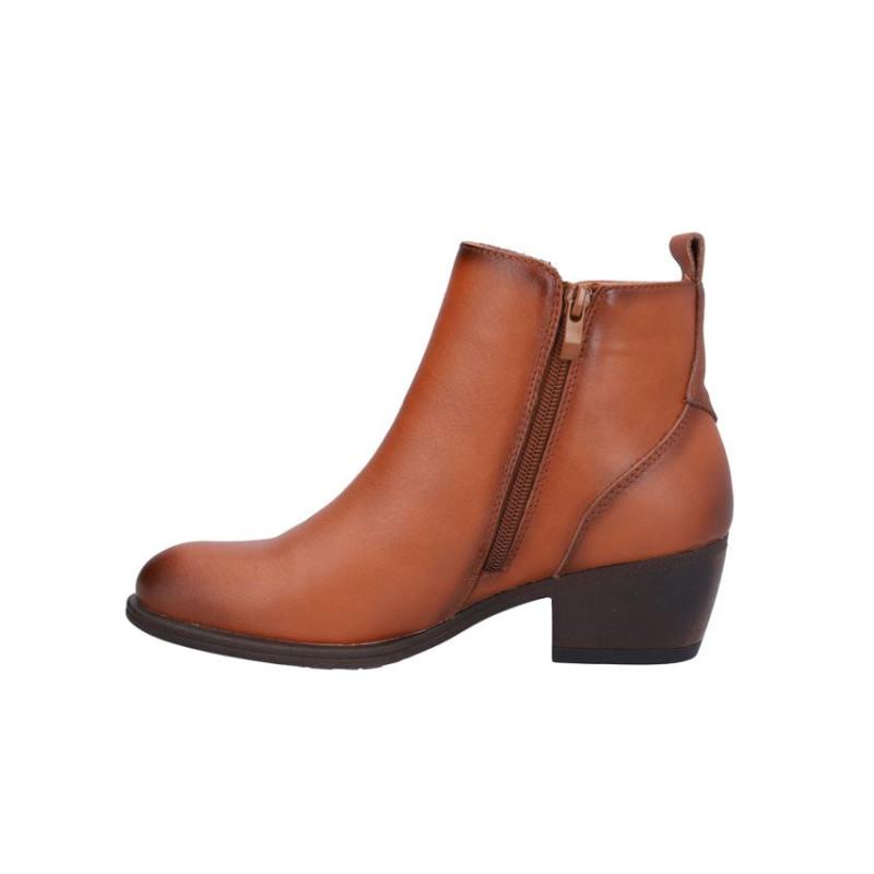Botines impermeables de señora Bonaventure fabricados en piel color camel, forro textil con vista de piel, plantilla textil, con cremallera en la parte interior para facilitar la puesta y retirada del producto, altura de caña 11 cm, suela con tacon de 5 cm y plataforma de 1 cm altura. Composición: Empeine: Piel. Forro: Pie/textil. Plantilla: textil. Suela: Fibra sintetica. Componente principal: Piel