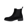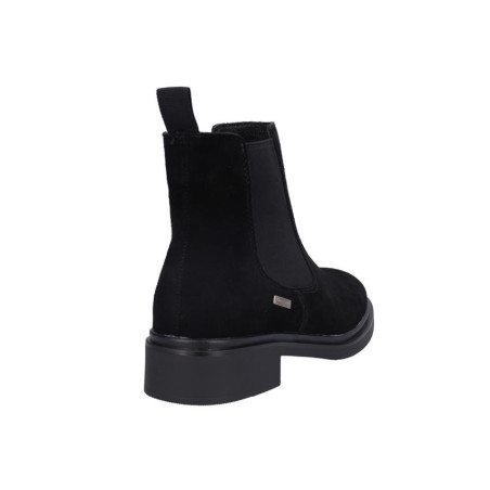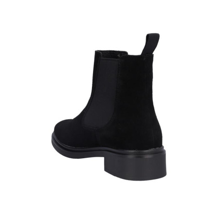 Botines impermeables de señora Bonaventure fabricados en serraje color negro, forro textil con vista de piel, plantilla textil, con elasticos en la parte exterior e interior para facilitar la puesta y retirada del producto, altura de caña 12 cm, suela con tacon de 4 cm y plataforma de 1'5 cm altura. Composición: Empeine: Serraje. Forro: Piel/textil. Plantilla: textil. Suela: Fibra sintetica. Componente principal: Serraje