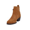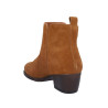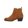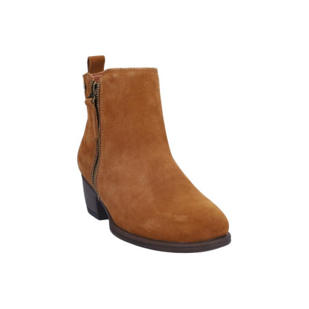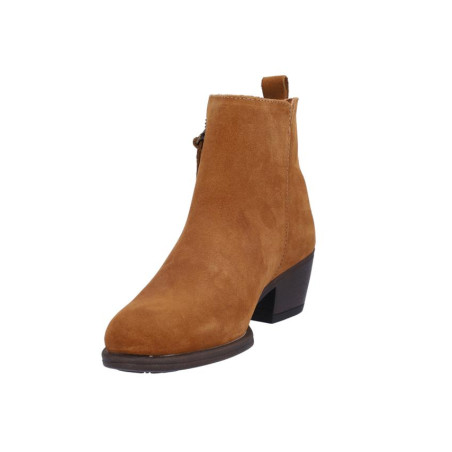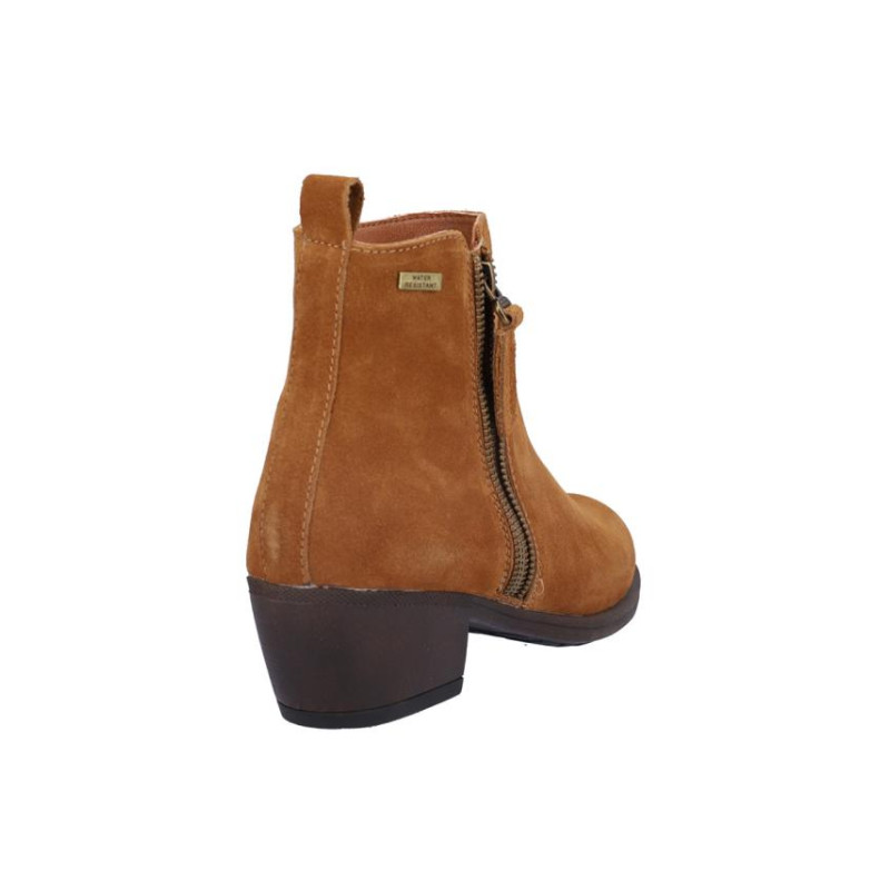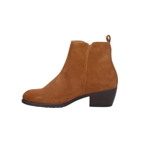 Botines impermeables de señora Bonaventure fabricados en serraje color havana, forro textil con vista de piel, plantilla textil, con cremallera en la parte exterior para facilitar la puesta y retirada del producto, altura de caña 11'5 cm, suela con tacon de 5 cm y plataforma de 1 cm altura. Composición: Empeine: Serraje. Forro: Piel/textil. Plantilla: textil. Suela: Fibra sintetica. Componente principal: Serraje