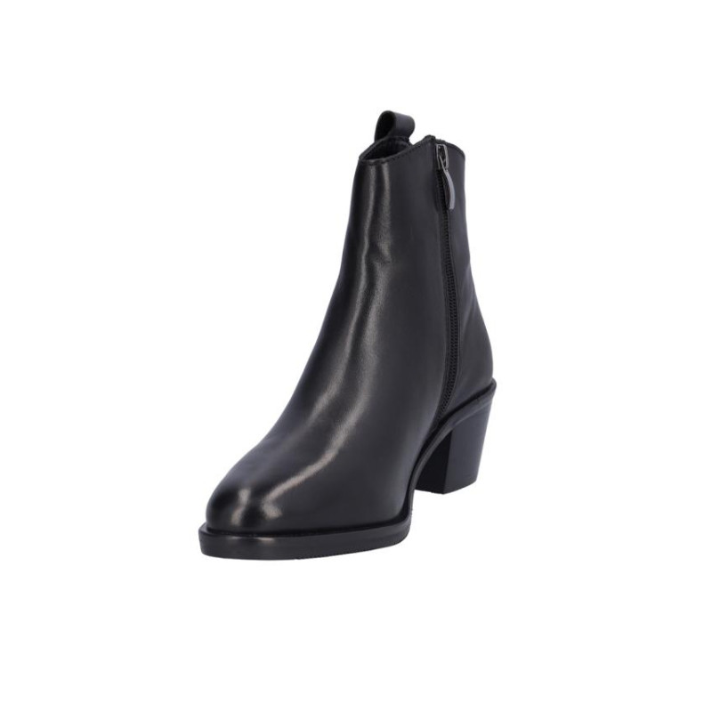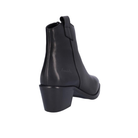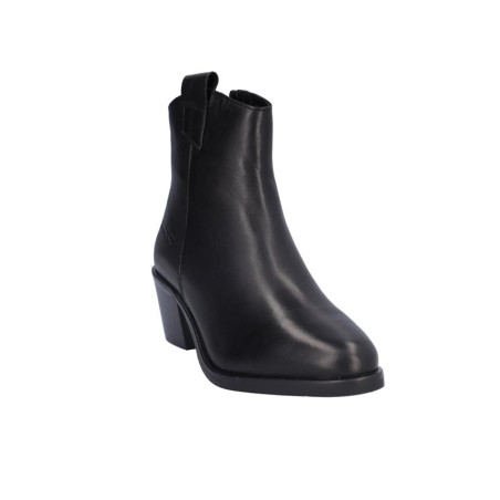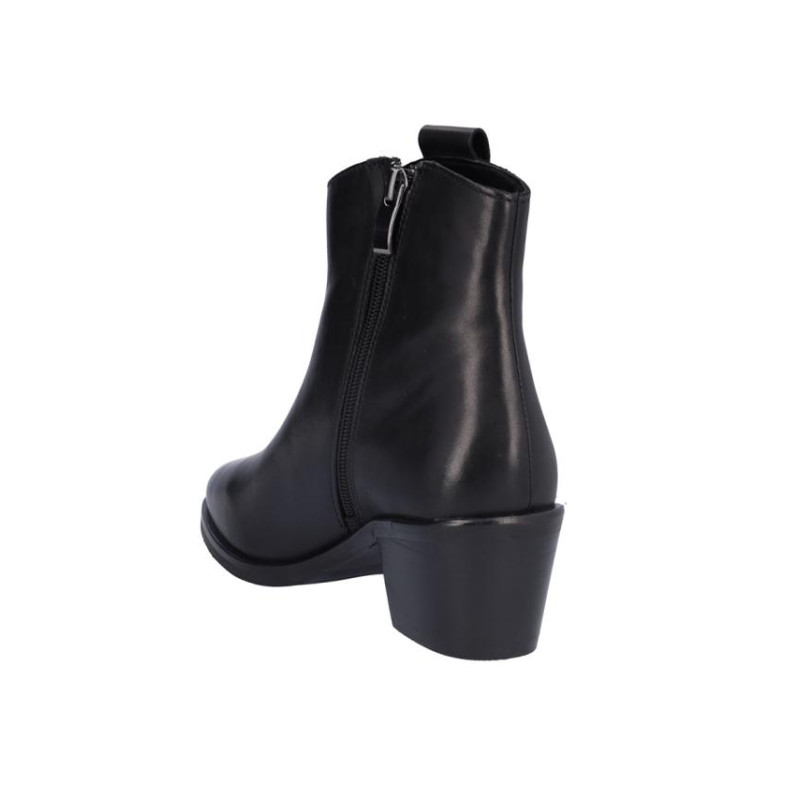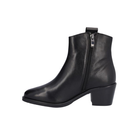 Botines de señora Bonaventure fabricados en piel color negro. Forro textil con vista de piel, plantilla piel, cremallera en parte interior para facilitar la puesta y retirada del producto, altura de caña 16 cm suela con tacon de 5 cm y plataforma de 1 cm altura. Composición: Empeine: Piel. Forro: Piel/textil. Plantilla: Piel. Suela: Fibra sintetica. Componente principal: Piel